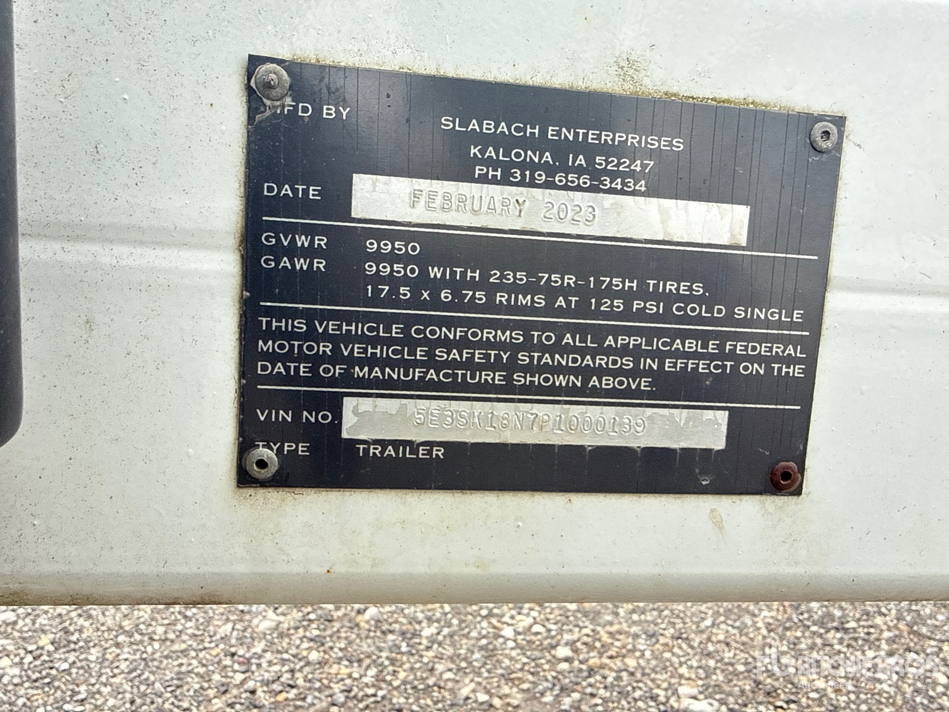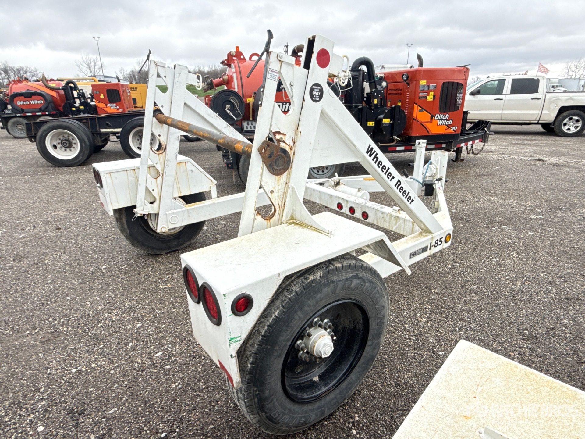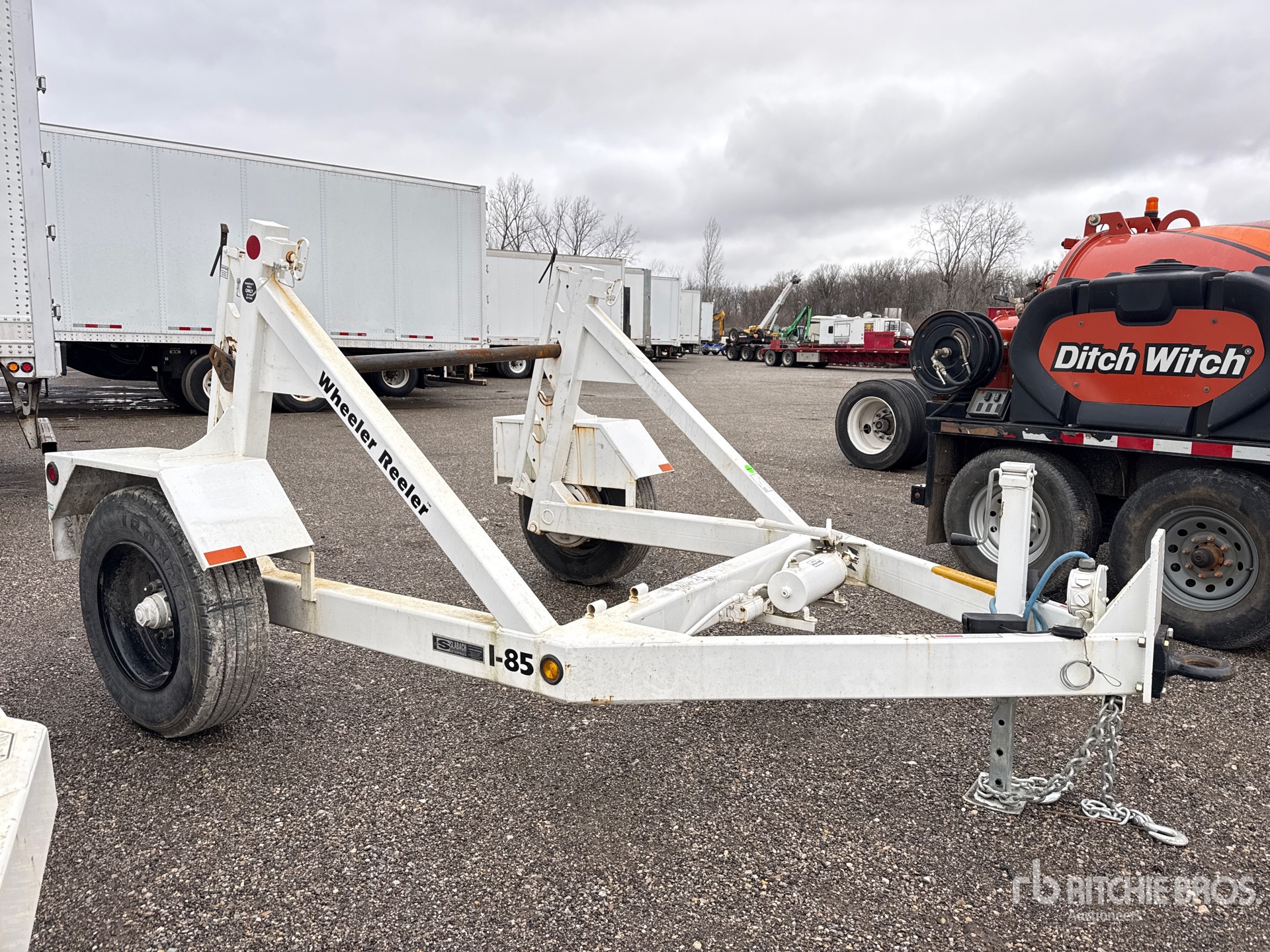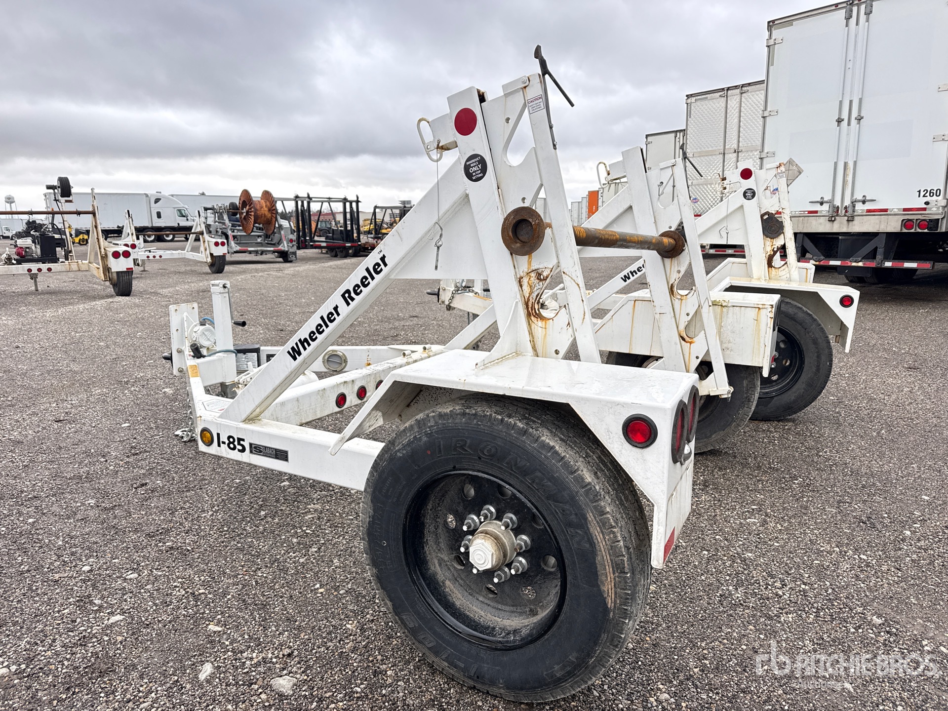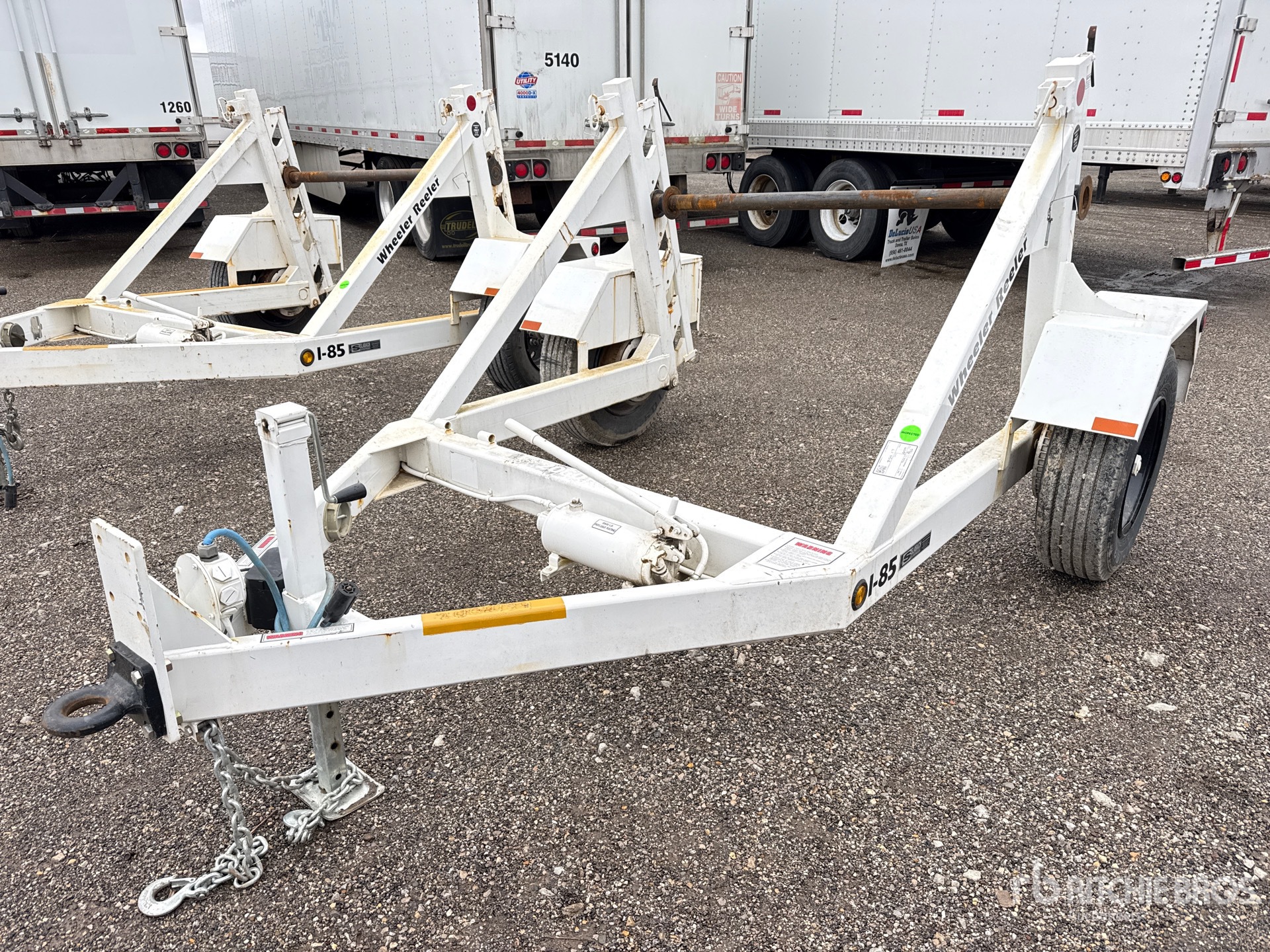 Located in Lane 38, Lunette Ring Hitch, Electric Brakes, Self-Loading Reel Carrier, Hydraulic Reel Hoist, 235/75R17.5 Tires, 9950 lb GVWR
