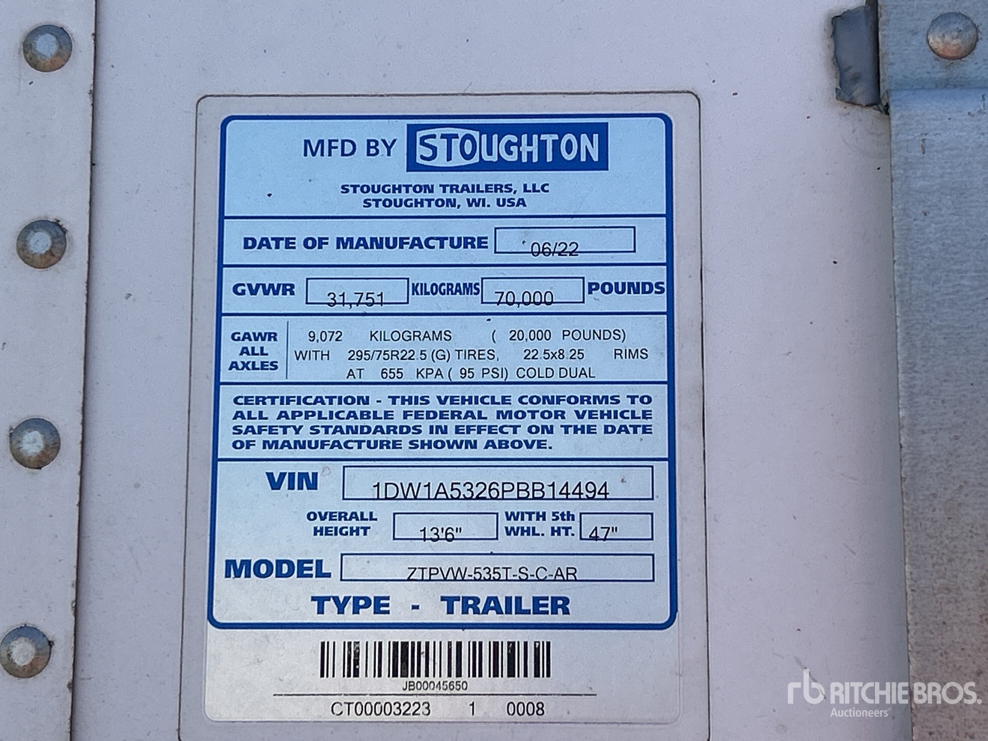 Air Ride Sliding Suspension, Hardwood Floor, Swing Door, 295/75R22.5 Tires 70000 lb GVWR