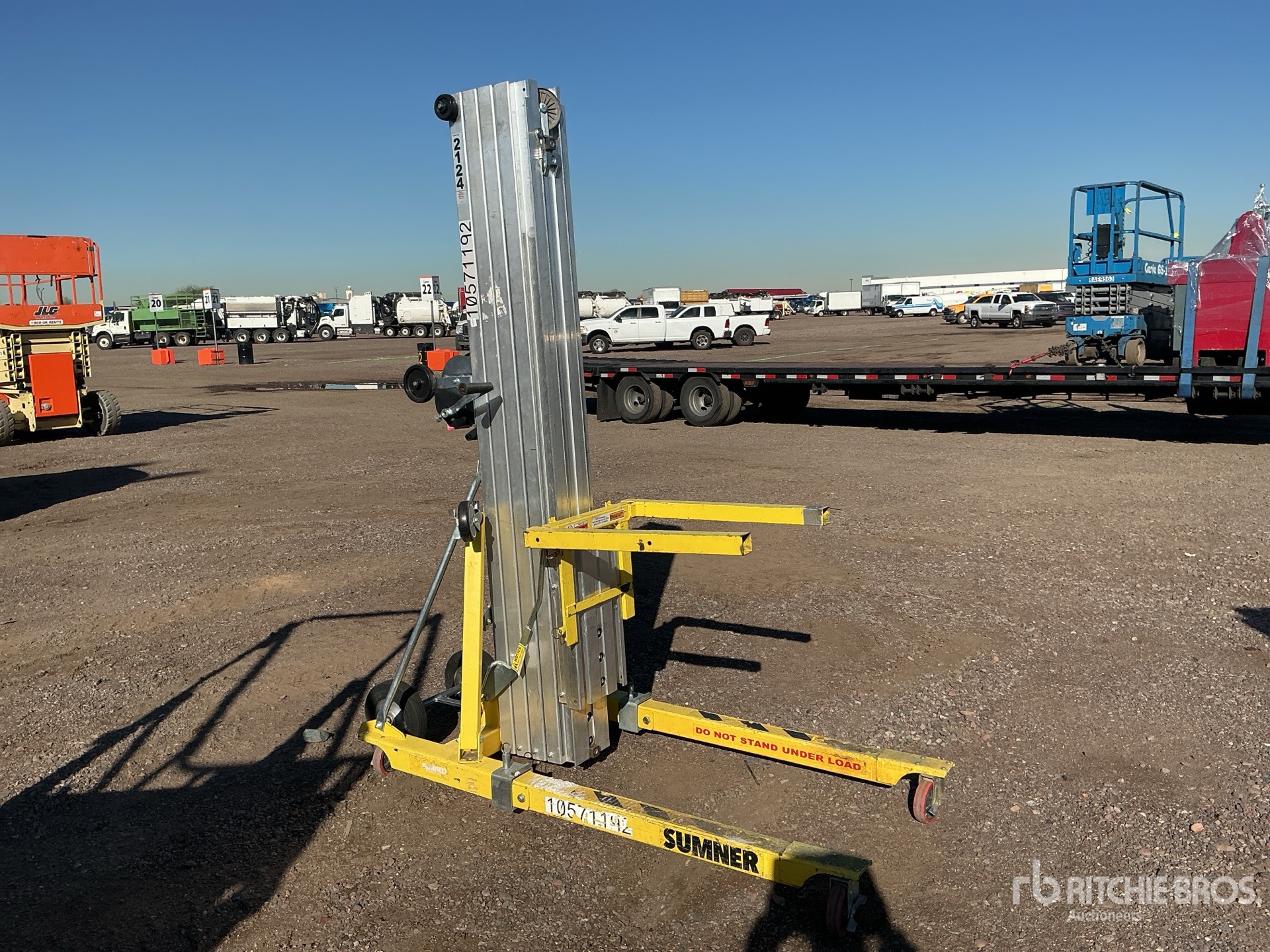 Maten worden slechts bij benadering gegeven. De werkelijke afmetingen onder belasting kunnen variëren afhankelijk van de hoogte van de vrachtwagen/aanhanger en de configuratie/positie van de geladen machine. Het is de verantwoordelijkheid van de koper om alle ladingen te meten voordat deze onze veilinglocatie verlaten, om te garanderen dat de lading veilig is voor transport. Alle maten moeten door de koper worden gecontroleerd. Vertrouw niet op deze maten voor transportdoeleinden.