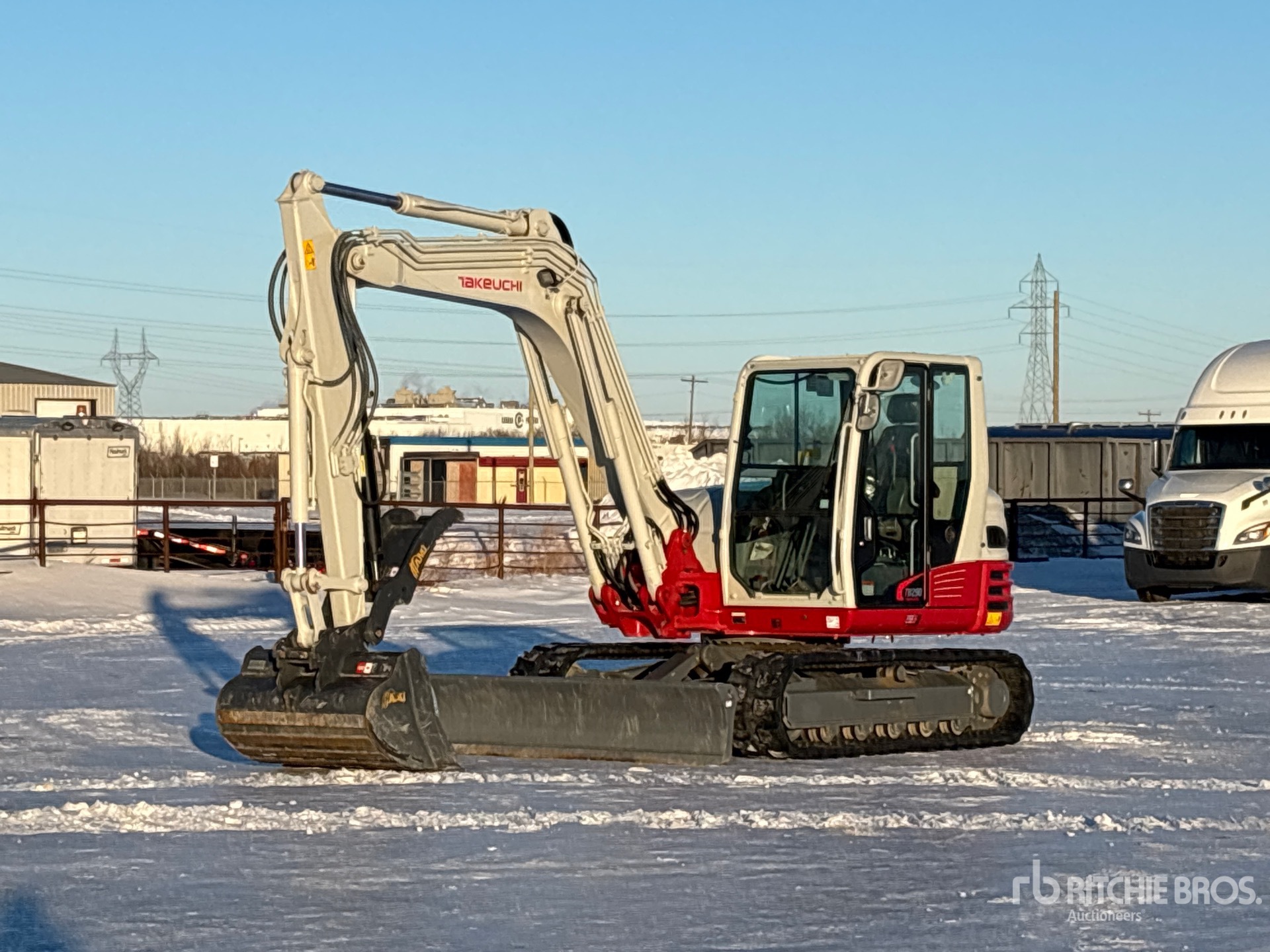 Maten worden slechts bij benadering gegeven. De werkelijke afmetingen onder belasting kunnen variëren afhankelijk van de hoogte van de vrachtwagen/aanhanger en de configuratie/positie van de geladen machine. Het is de verantwoordelijkheid van de koper om alle ladingen te meten voordat deze onze veilinglocatie verlaten, om te garanderen dat de lading veilig is voor transport. Alle maten moeten door de koper worden gecontroleerd. Vertrouw niet op deze maten voor transportdoeleinden.