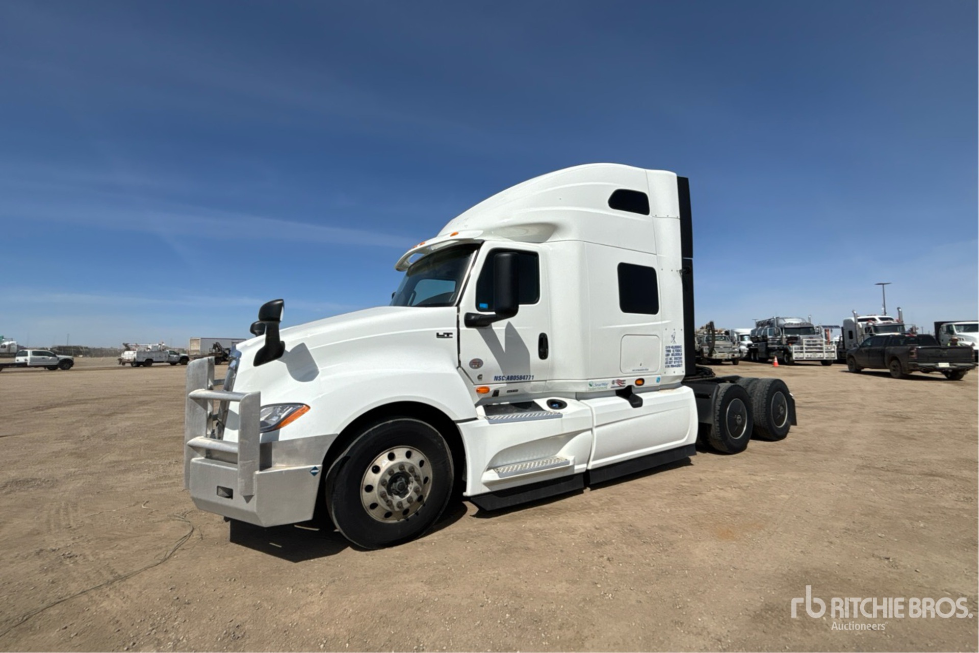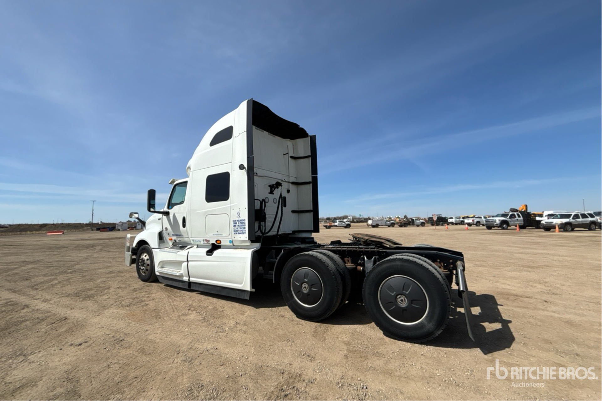 Cummins X15 450 hp Engine, 2023 US EPA Label, 9339 Engine hrs, Automatic Transmission, 13200 lb Front Axle, 40000 lb Rears, 53200 lb GVWR, Engine Brake, Double Differential Locks, 56 in High Rise Sleeper Cab, Bunk Beds, Bunk Heater, 232 in Wheelbase, Air Suspension, Aluminum Wheels, 11R22.5, Air Sliding 5th Wheel, Dual Fuel Tanks