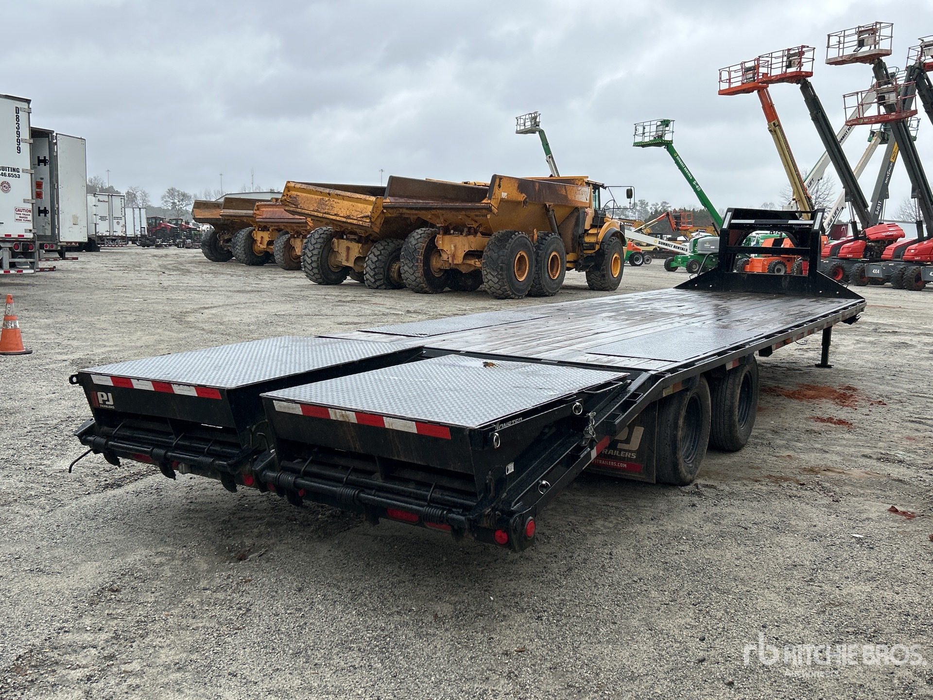Spring Suspension, Electric Brakes, 25 ft Main Deck, 5 ft Fixed Dovetail, 98 in Usable Deck Width, 102 in Overall Deck Width, Manual Ramps, Wood Flooring, 25000 lb GVWR