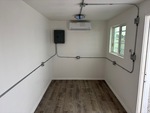 20' x 8', 8' 6" High, (1) Swing-Out Door, (2) Windows w/Security Bars, Fork Pockets, Laminate Flooring, SunScreen, R13 Insulation, (1) Pioneer HVAC Mini-Split, (1) Electric Panel, LED Ceiling Lights, Interior Outlets, Wiring done to National Electric Code (NEC)