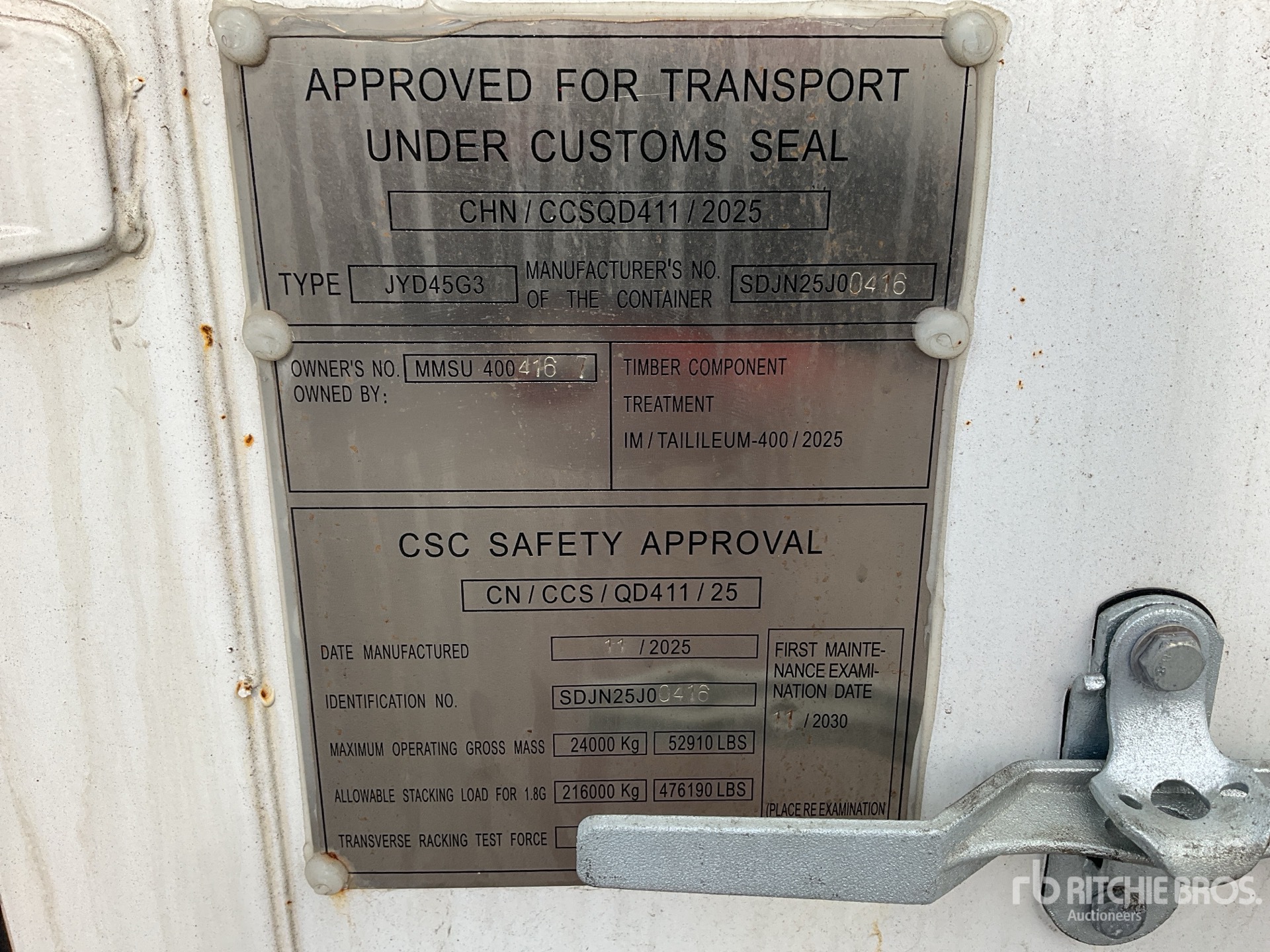 Maten worden slechts bij benadering gegeven. De werkelijke afmetingen onder belasting kunnen variëren afhankelijk van de hoogte van de vrachtwagen/aanhanger en de configuratie/positie van de geladen machine. Het is de verantwoordelijkheid van de koper om alle ladingen te meten voordat deze onze veilinglocatie verlaten, om te garanderen dat de lading veilig is voor transport. Alle maten moeten door de koper worden gecontroleerd. Vertrouw niet op deze maten voor transportdoeleinden.