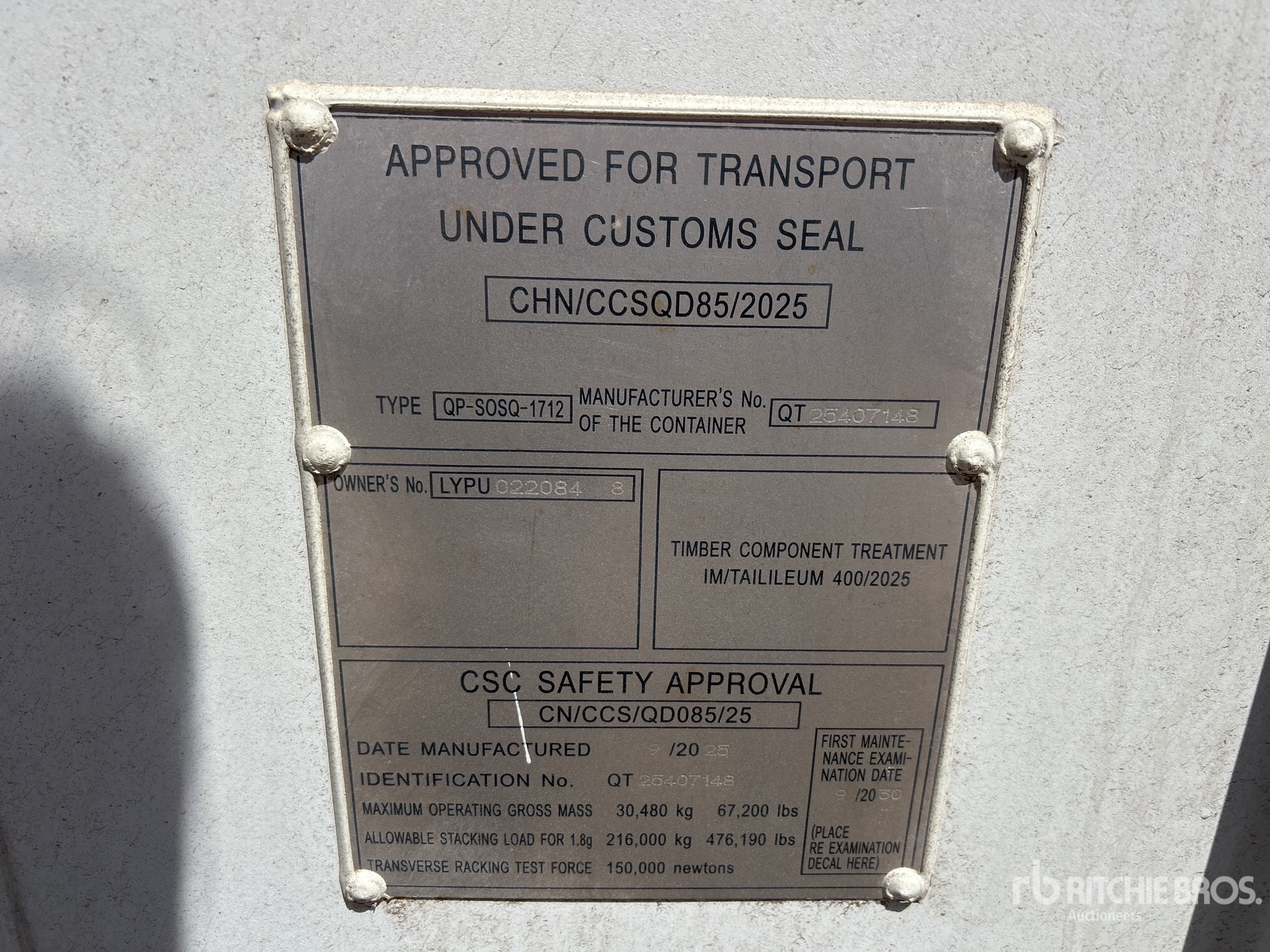 Maten worden slechts bij benadering gegeven. De werkelijke afmetingen onder belasting kunnen variëren afhankelijk van de hoogte van de vrachtwagen/aanhanger en de configuratie/positie van de geladen machine. Het is de verantwoordelijkheid van de koper om alle ladingen te meten voordat deze onze veilinglocatie verlaten, om te garanderen dat de lading veilig is voor transport. Alle maten moeten door de koper worden gecontroleerd. Vertrouw niet op deze maten voor transportdoeleinden.