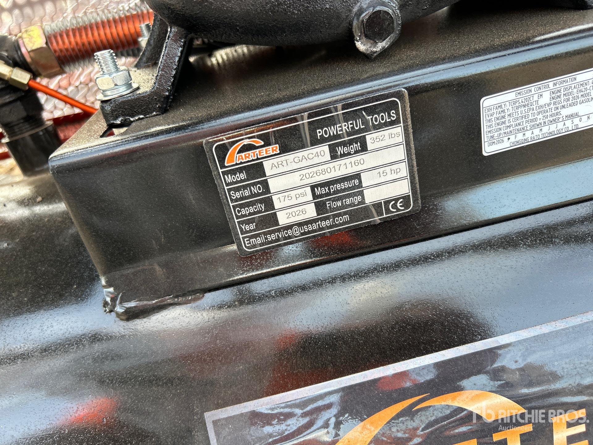175 psi Working Pressure, 1 Cylinder 15 hp Gasoline Engine, Item is new/unused
