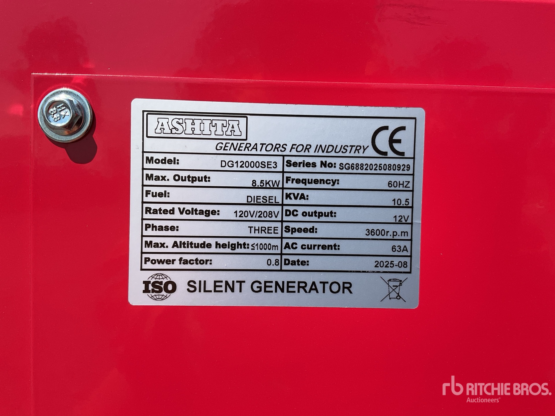 2025 Ashita DG12000SE3 10.5 kVA Mobile Planta de Luz (Sin Usar) / Generator set (Unused)