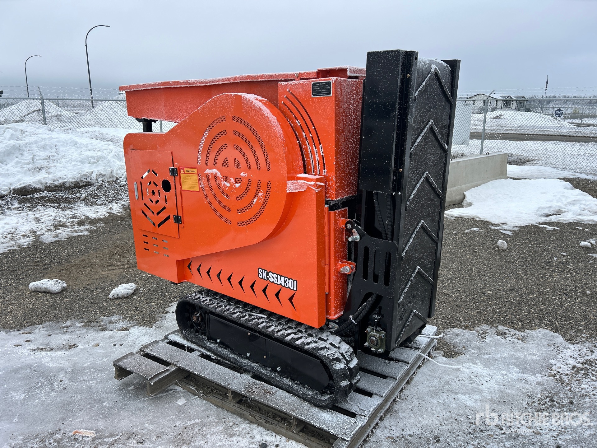 2 ft 5 in x 5 ft Vibratory Pan Feeder 14 in x 9 in Jaw Crusher, 18 hp Drive Motor, 16 in Wide End Discharge Conveyor, 1 Cylinder Gasoline Engine, 8 in Rubber Tracks