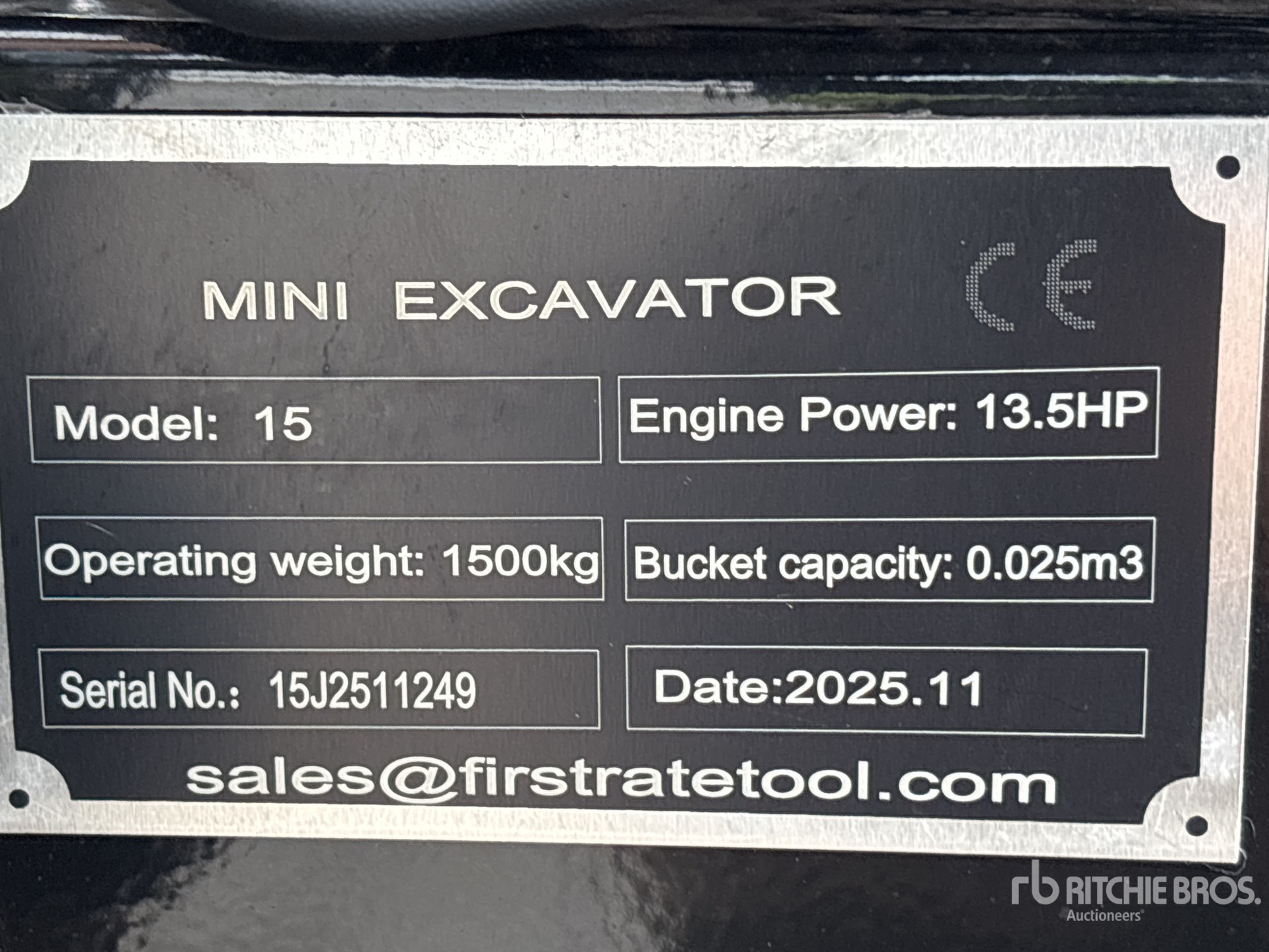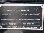 2025 US EPA Label, 2 ft 6 in Stick, Auxiliary Hydraulic Plumbing, Backfill Blade, 7 in Rubber Tracks, 16 in Digging Bucket, Manual Thumb