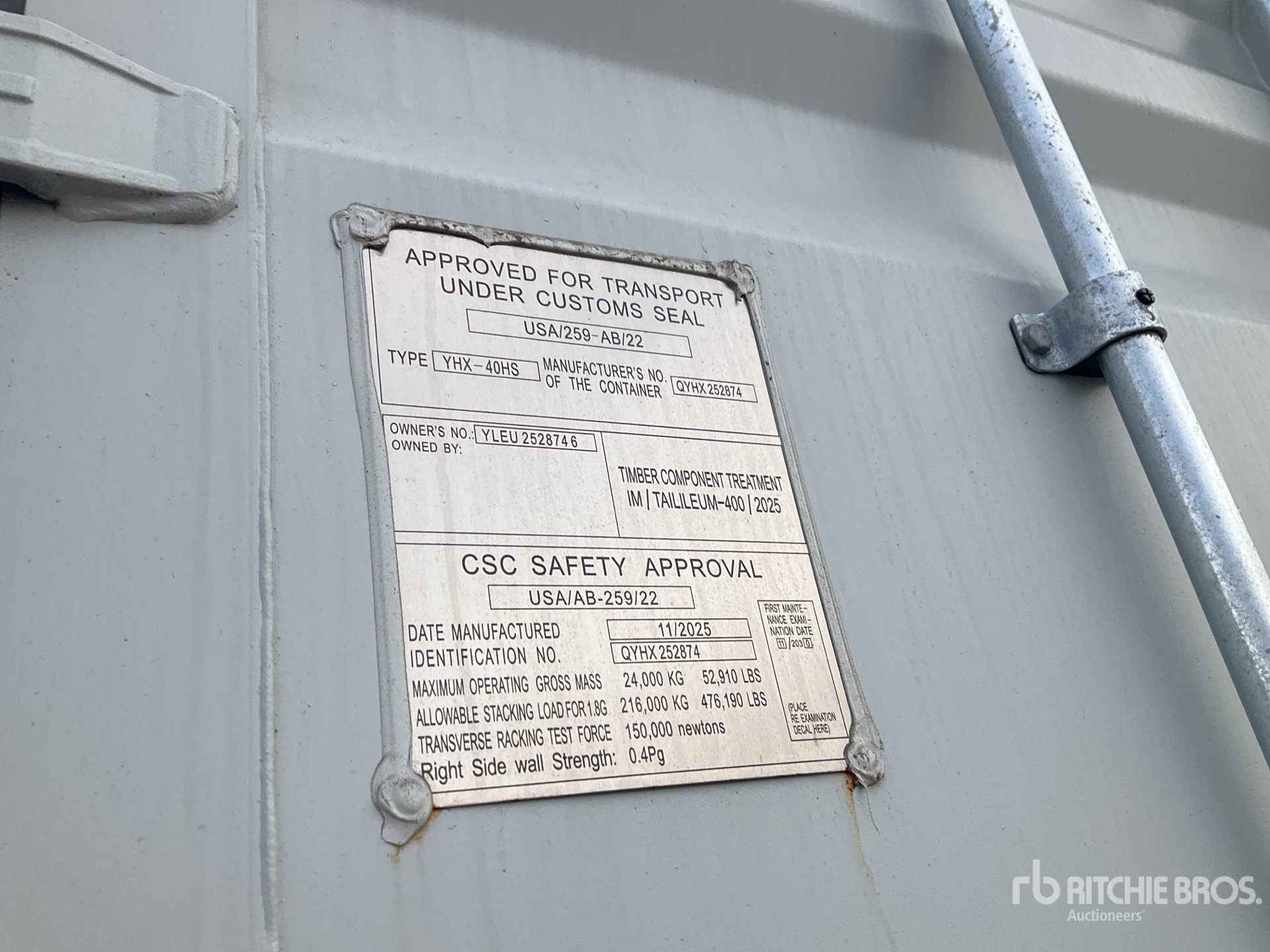 Een gekwalificeerde medewerker van Ritchie Bros. heeft gedetailleerde informatie over de machine verzameld en functionele tests uitgevoerd op de belangrijkste onderdelen van deze machine. U, of een gevolmachtigde, mag ook alle items ter plaatse inspecteren voordat u op de veilingdag een bod doet.
