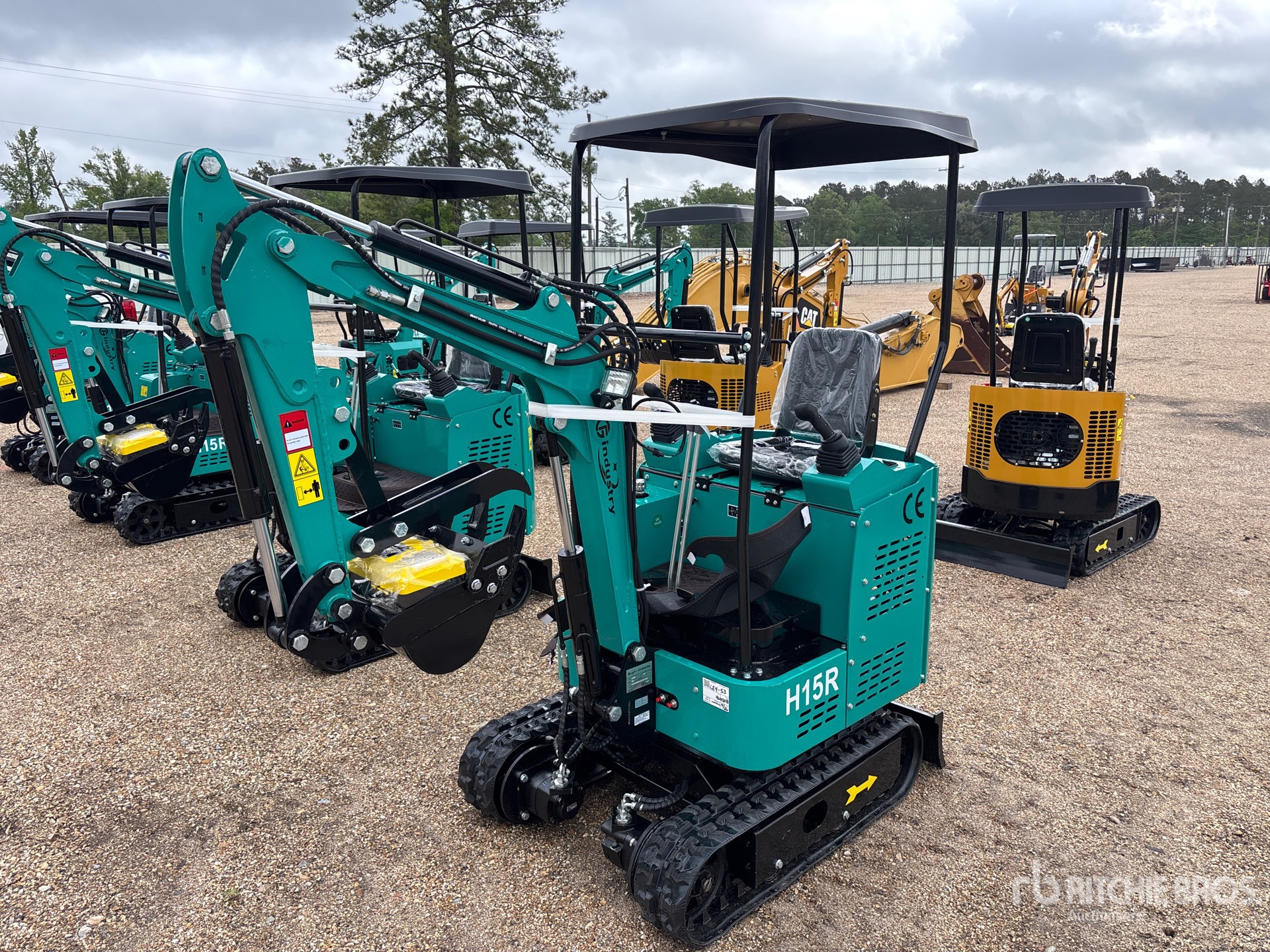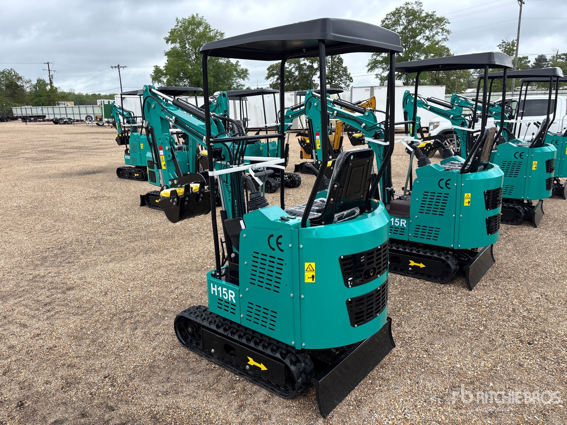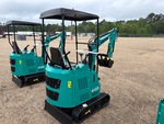 2025 US EPA Label, 2 ft 7 in Stick, Auxiliary Hydraulic Plumbing, Backfill Blade, 7 in Rubber Tracks, 15 in Digging Bucket, Manual Thumb, Item is new/unused.
