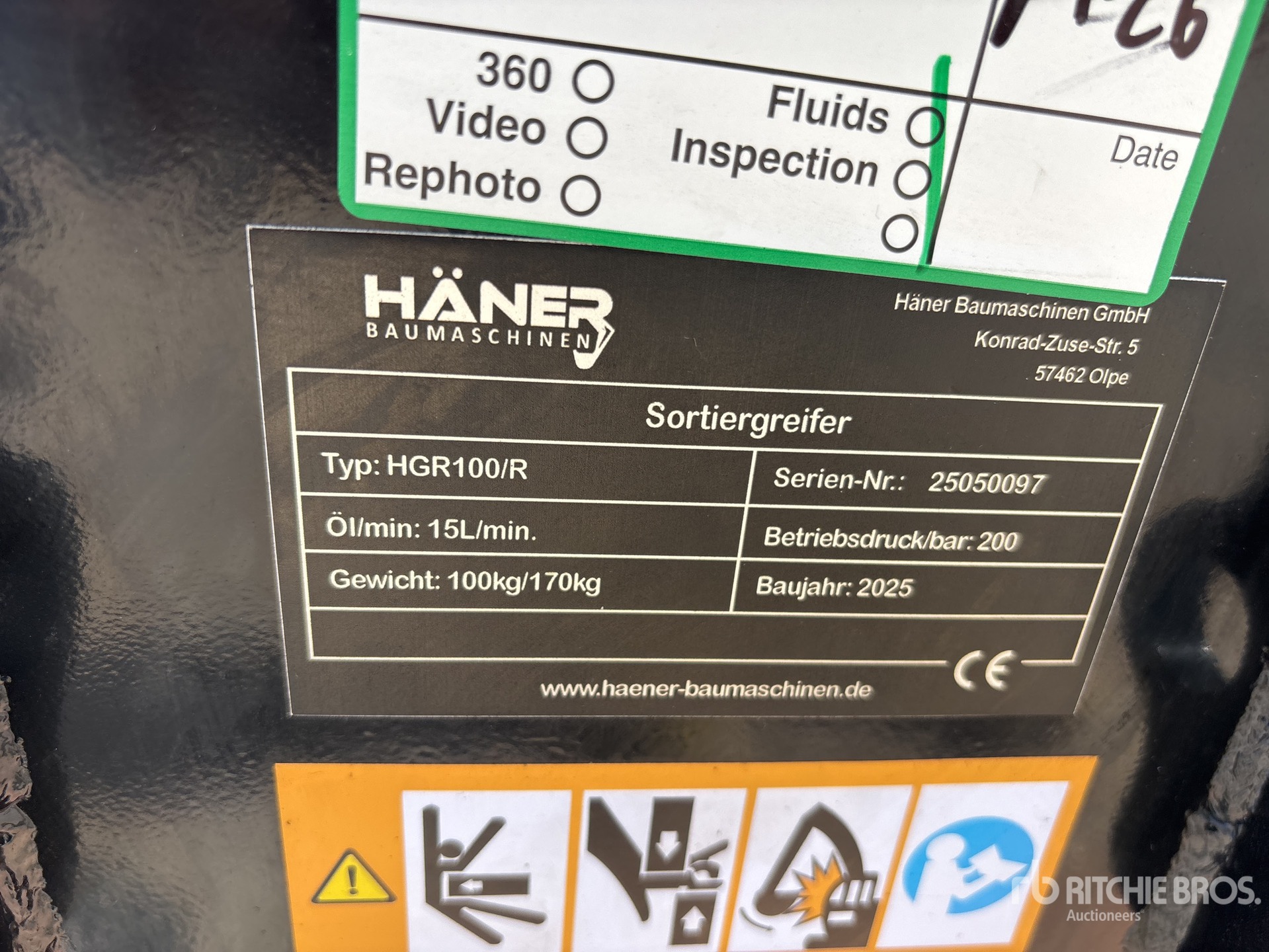 De gedetailleerde informatie over het materieel is beperkt, en Ritchie Bros. Auctioneers heeft geen andere aspecten of onderdelen van het materieel geïnspecteerd dan uitdrukkelijk in dit document vermeld. Tenzij uitdrukkelijk vermeld, geven wij geen verklaringen of garanties, expliciet of impliciet, met betrekking tot het materieel of de onderdelen ervan, met inbegrip van, maar niet beperkt tot, verklaringen of garanties met betrekking tot functionaliteit, conformiteit of naleving van veiligheidsnormen of -vereisten van een toepasselijke autoriteit of regelgevende instantie, geschiktheid voor een bepaald doel of verkoopbaarheid. U wordt ten zeerste aangeraden uw eigen gedetailleerde inspectie van het materieel uit te voeren voordat u een bod plaatst.