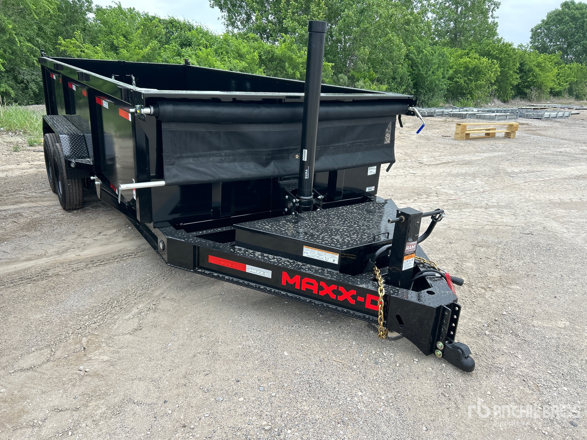 Ball Hitch, Spring Suspension, Electric Brakes, 16 ft Body, 35 in Side Walls, Steel Body, Manual Roll Tarp, Split Swing Tailgate, 215/75R17.5 Tires, 16000 lb GVWR