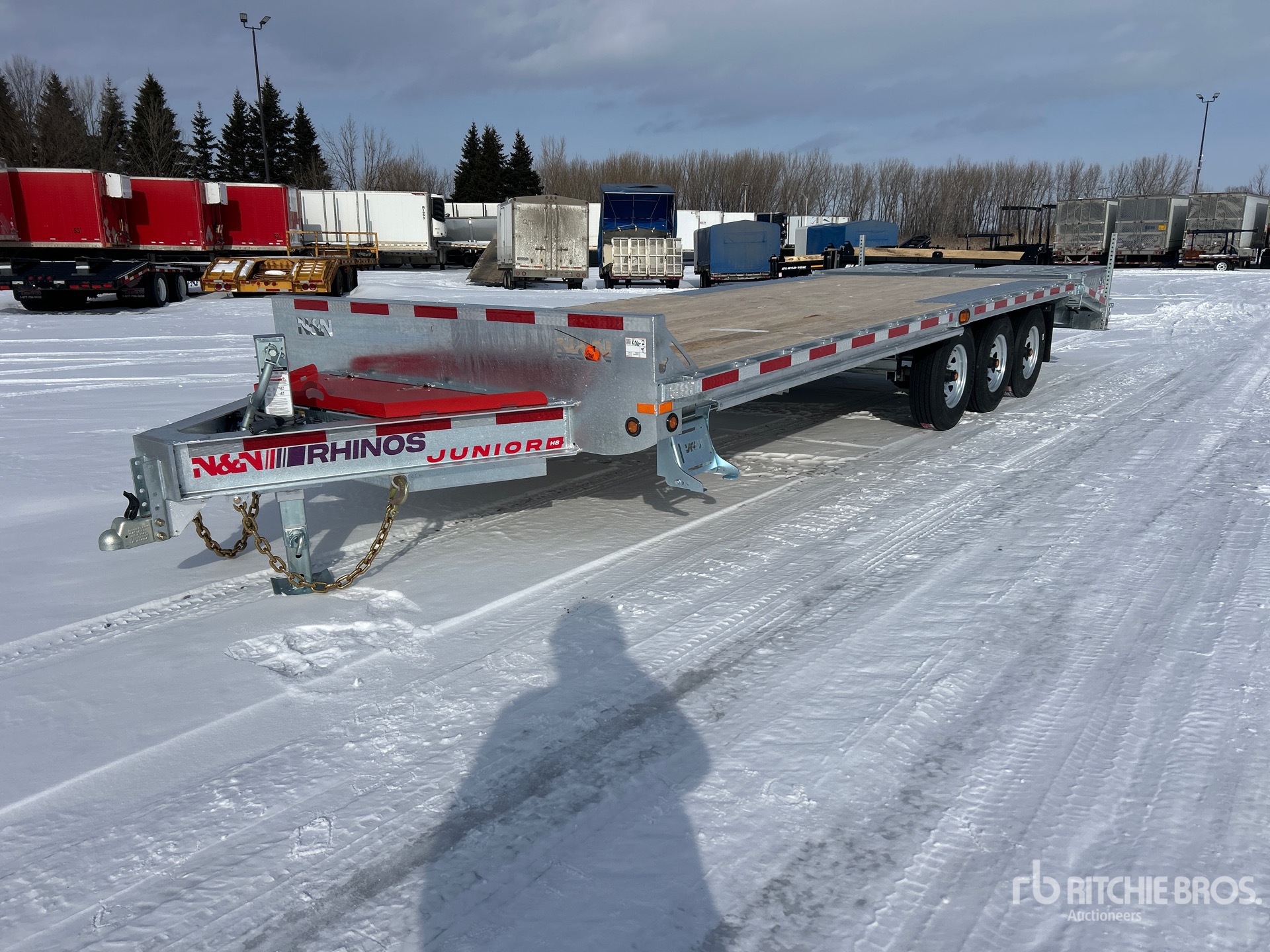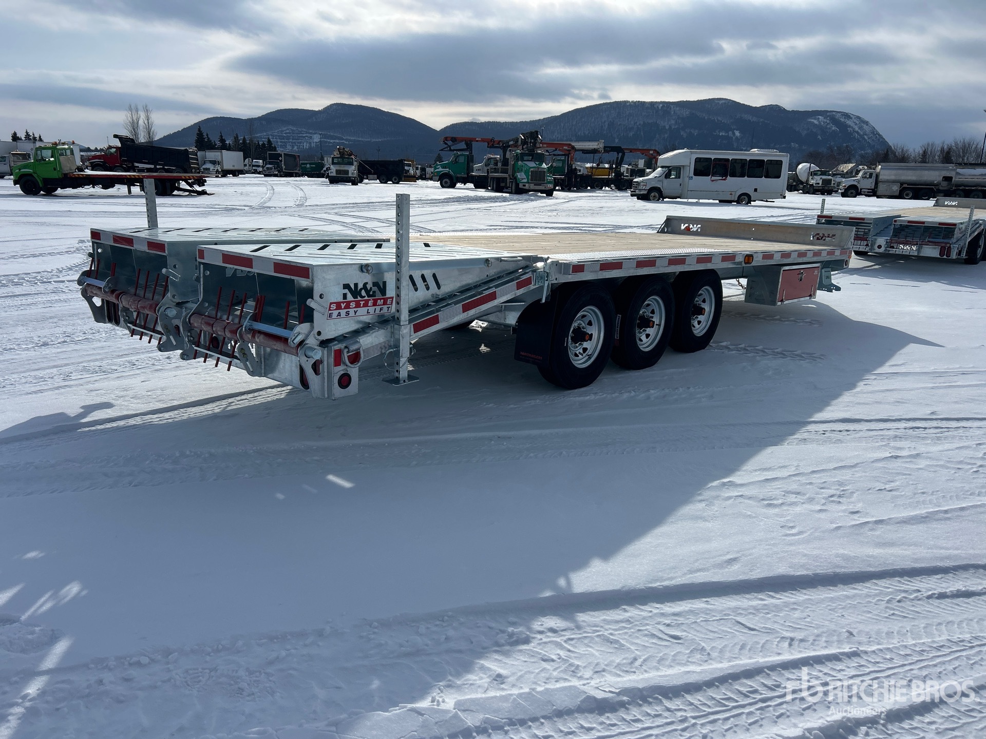 Galvanized Frame Ball Hitch, Spring Suspension, Electric Brakes, 19 ft 6 in Main Deck, 5 ft 6 in Fixed Dovetail, 97 in Usable Deck Width, 102 in Overall Deck Width, Storage Compartments, Spring Assisted Ramps, Wood Flooring, 235/80R16 Tires, 9526 kg GVWR