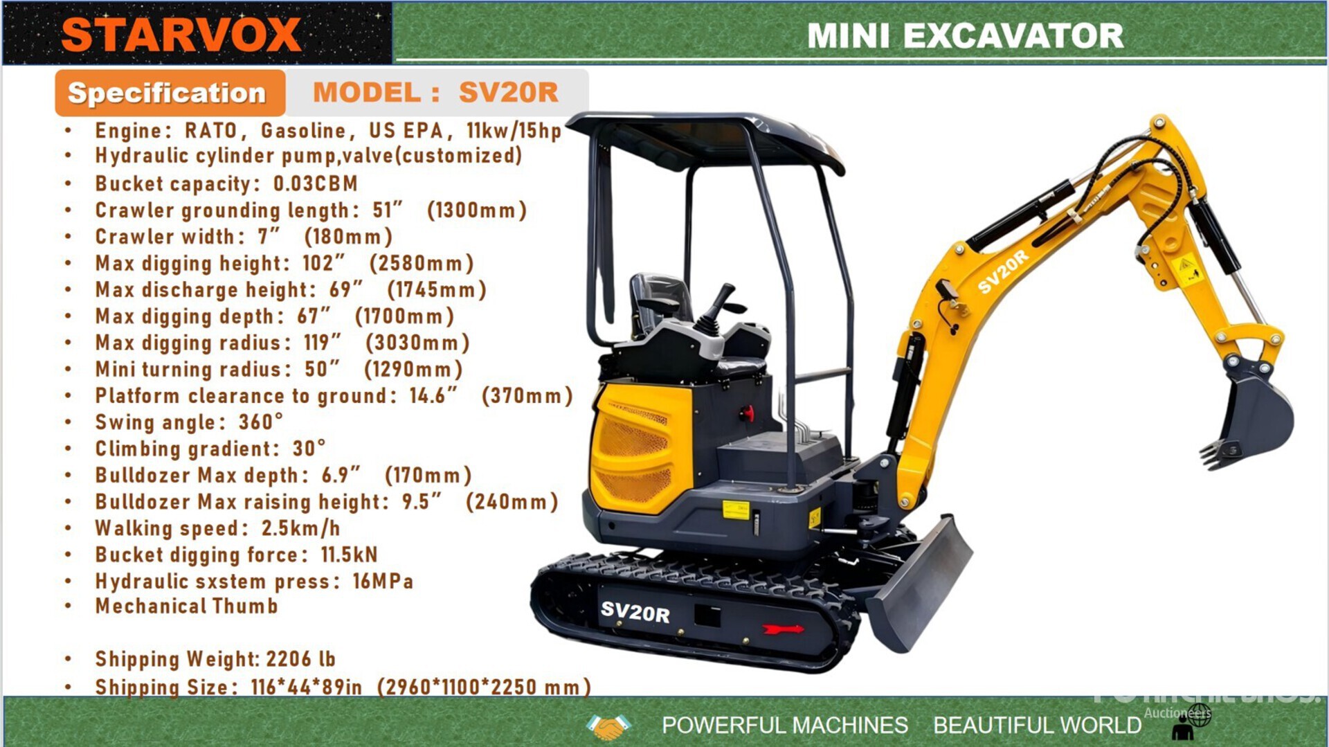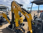 US EPA Label, 2 ft 8 in Stick, Auxiliary Hydraulic Plumbing, Backfill Blade, 7 in Rubber Tracks, 16 in Digging Bucket, Manual Thumb, Product images displayed are stock photos. Item is new/unused.