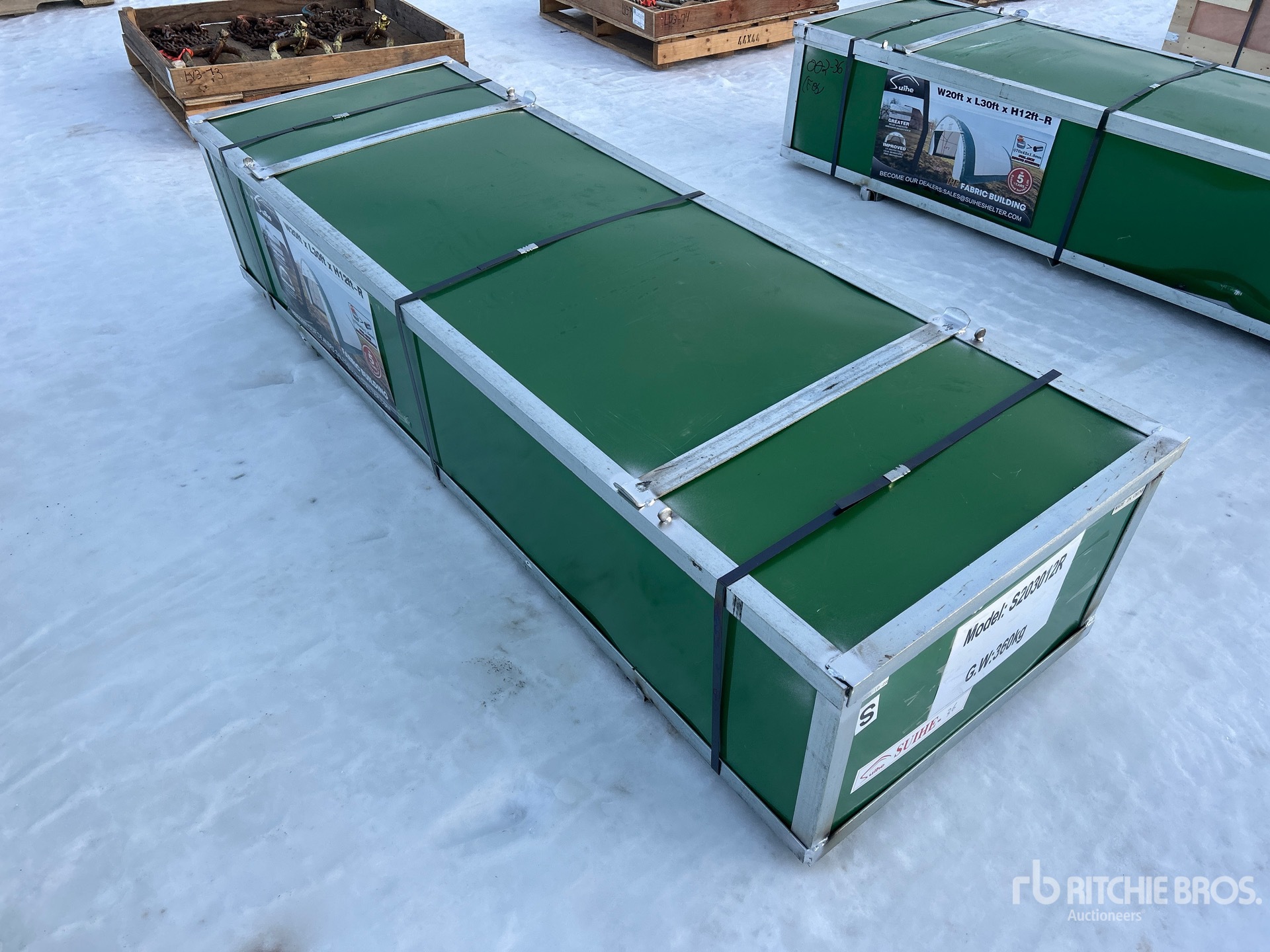 Maten worden slechts bij benadering gegeven. De werkelijke afmetingen onder belasting kunnen variëren afhankelijk van de hoogte van de vrachtwagen/aanhanger en de configuratie/positie van de geladen machine. Het is de verantwoordelijkheid van de koper om alle ladingen te meten voordat deze onze veilinglocatie verlaten, om te garanderen dat de lading veilig is voor transport. Alle maten moeten door de koper worden gecontroleerd. Vertrouw niet op deze maten voor transportdoeleinden.