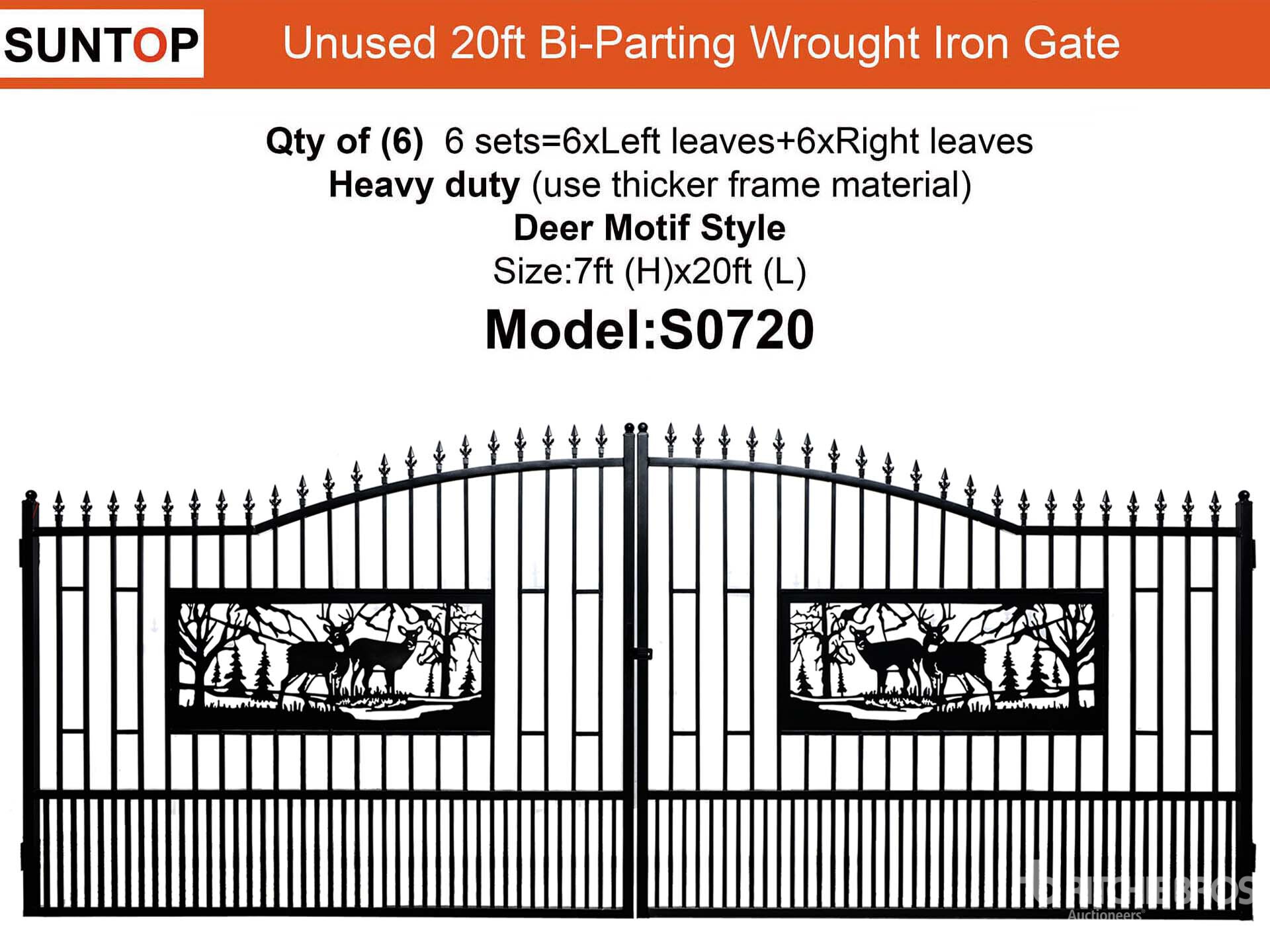 Quantity of (6) 2026 SUNTOP S0720 20 ft Wrought Iron Bi-Parting Oprit Poort (Unused)