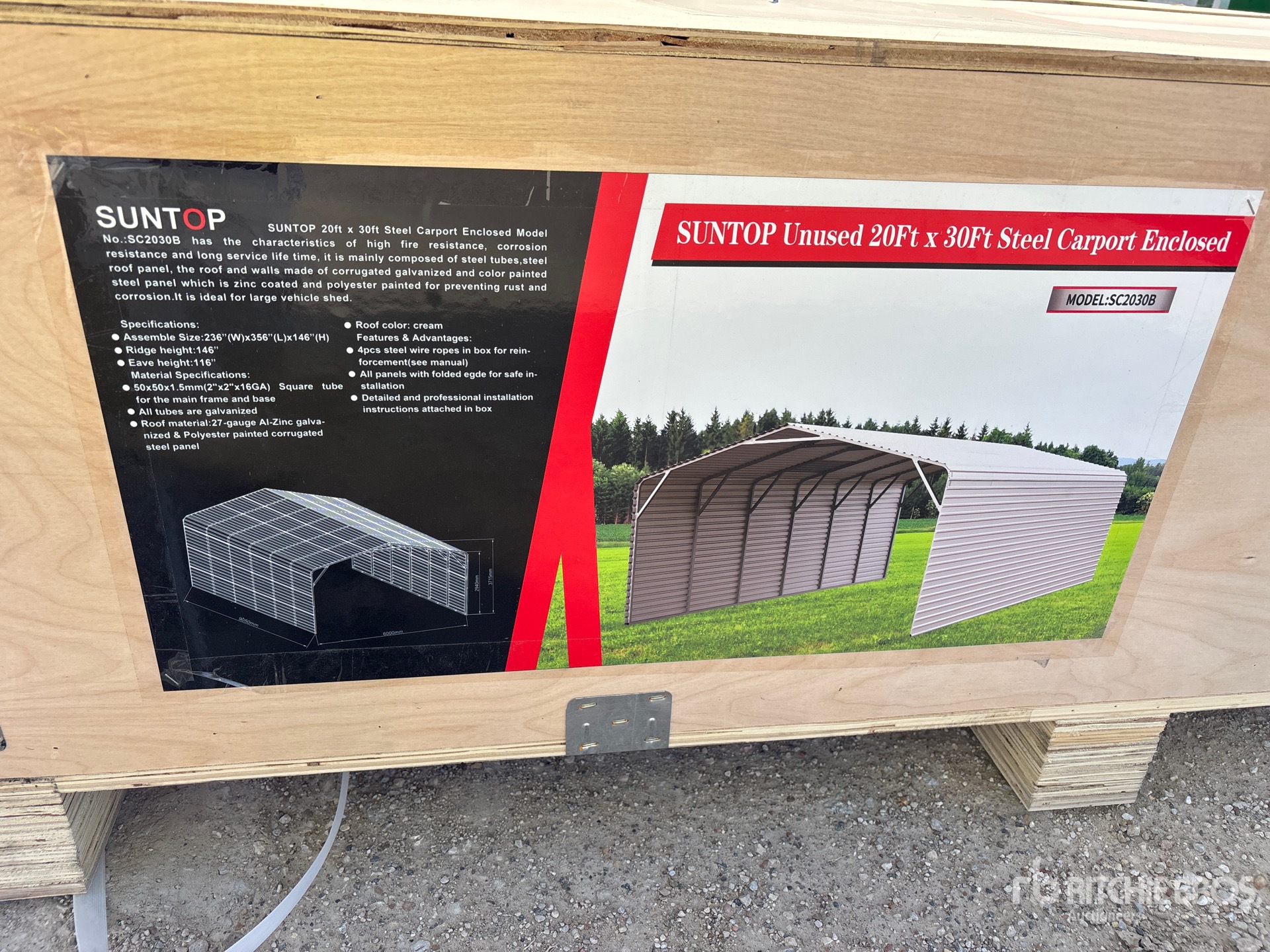 2026 SUNTOP S2030B 20 ft x 30 ft Steel Enclosed Carport (Unused)
