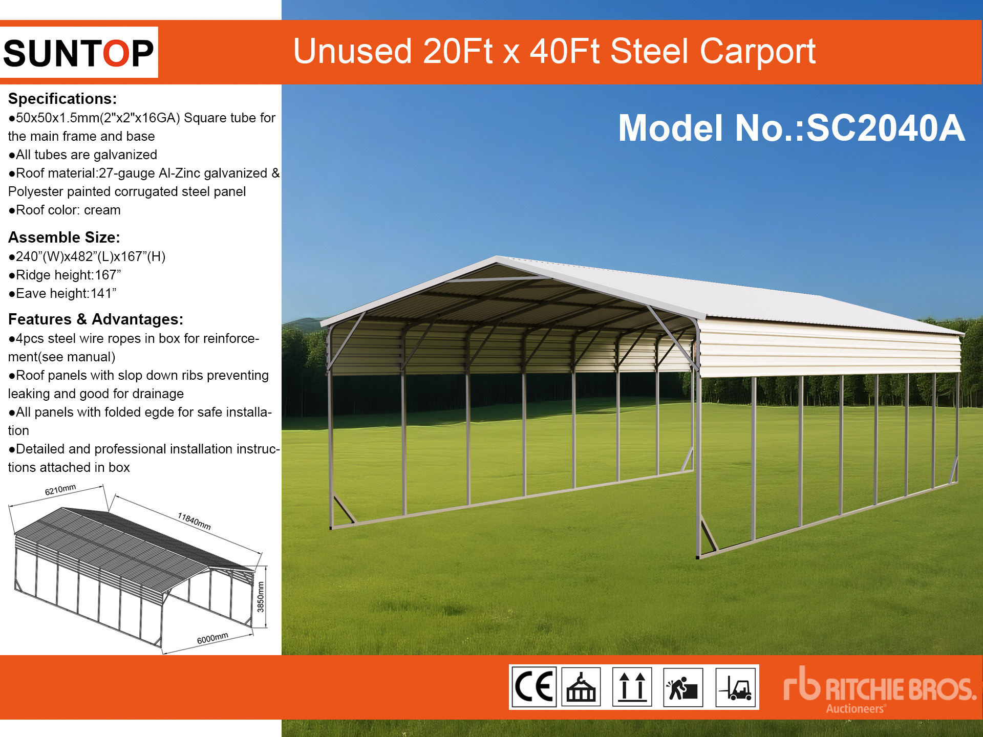 2026 SUNTOP SC2040A 20 ft x 40 ft Carport (Unused)