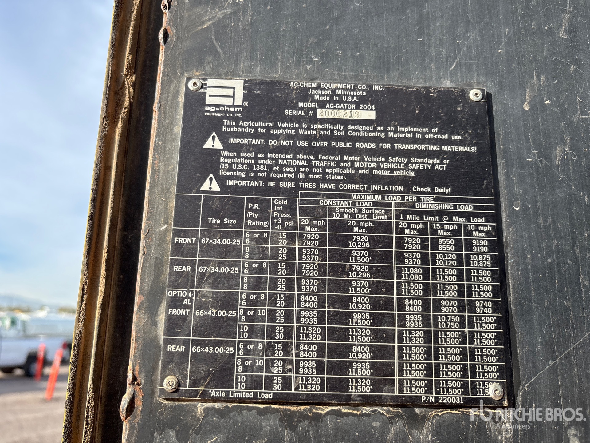 De gedetailleerde informatie over het materieel is beperkt, en Ritchie Bros. Auctioneers heeft geen andere aspecten of onderdelen van het materieel geïnspecteerd dan uitdrukkelijk in dit document vermeld. Tenzij uitdrukkelijk vermeld, geven wij geen verklaringen of garanties, expliciet of impliciet, met betrekking tot het materieel of de onderdelen ervan, met inbegrip van, maar niet beperkt tot, verklaringen of garanties met betrekking tot functionaliteit, conformiteit of naleving van veiligheidsnormen of -vereisten van een toepasselijke autoriteit of regelgevende instantie, geschiktheid voor een bepaald doel of verkoopbaarheid. U wordt ten zeerste aangeraden uw eigen gedetailleerde inspectie van het materieel uit te voeren voordat u een bod plaatst.