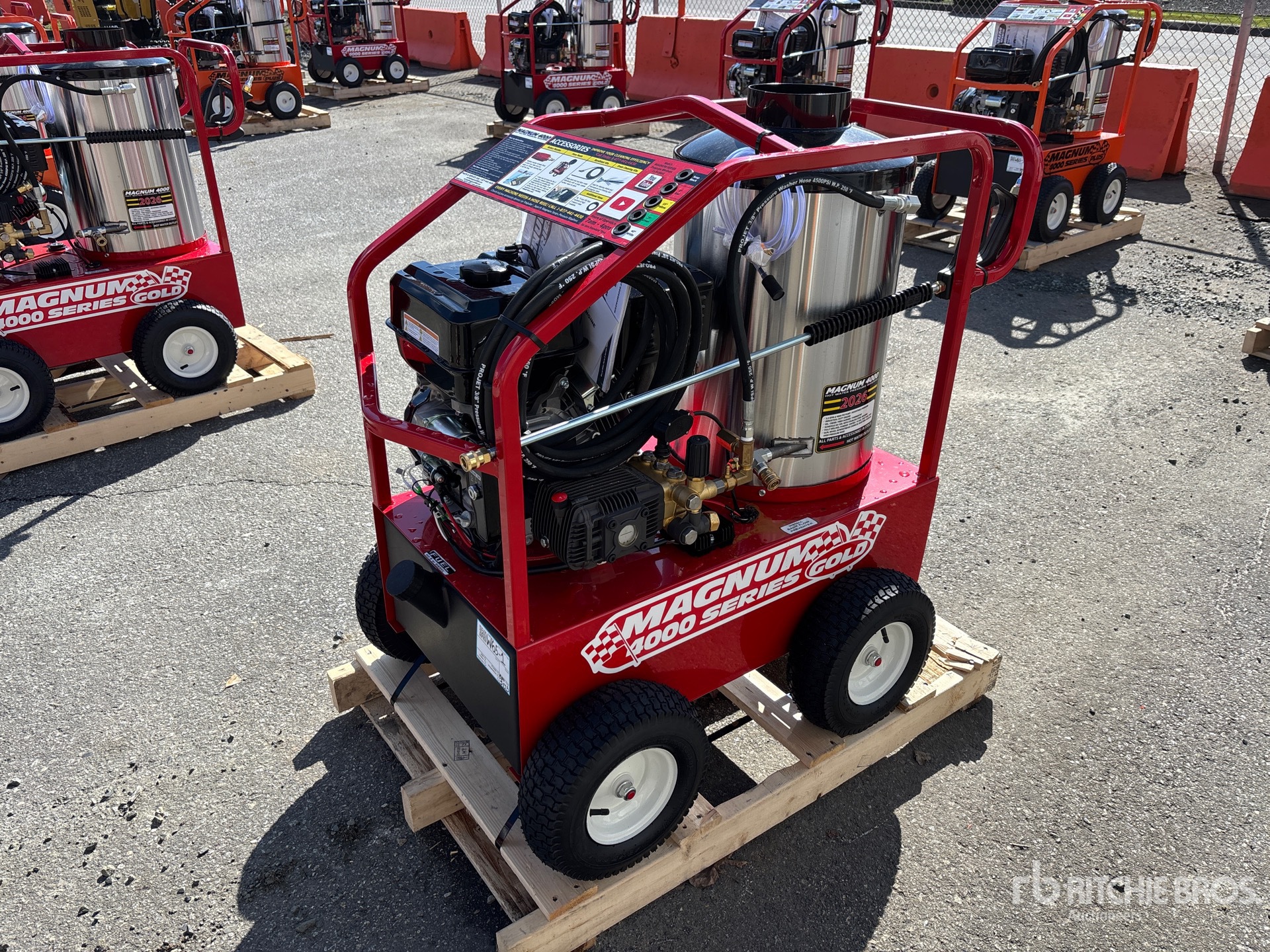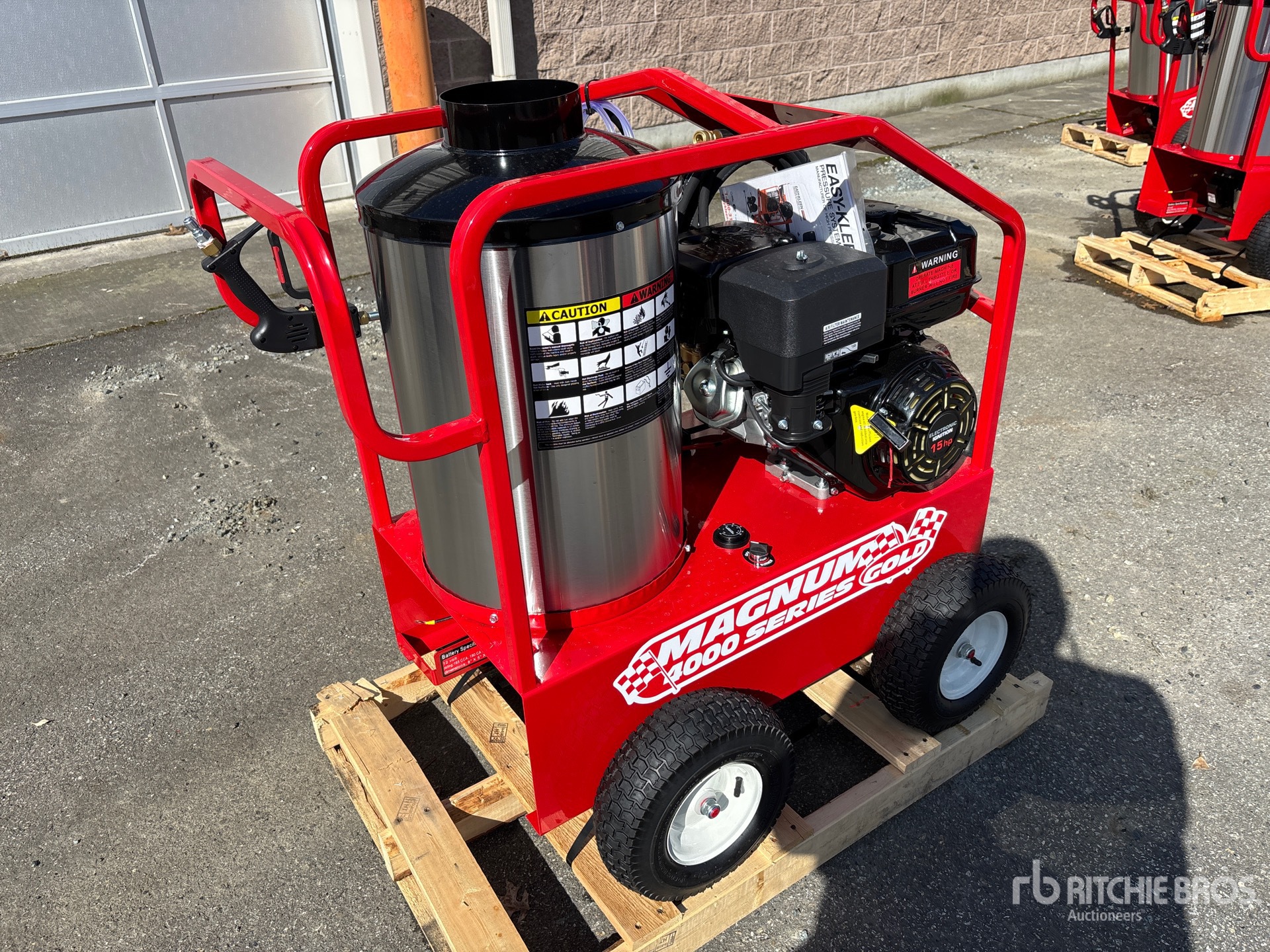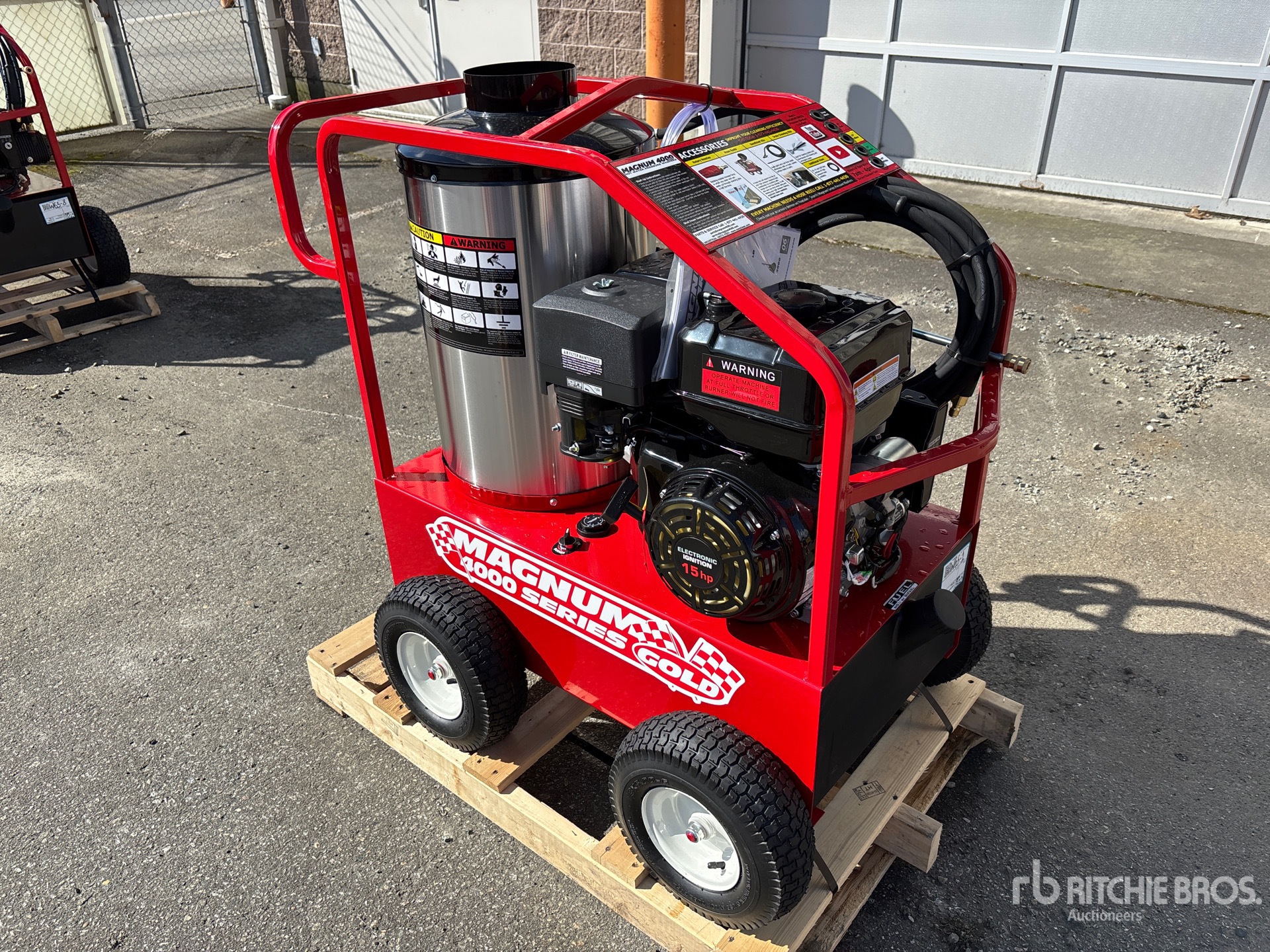 4000 psi Rating, Water Heater, Hose, Spray Wand, 15 hp Gasoline Engine, Product images displayed are stock photos. Item is new/unused.