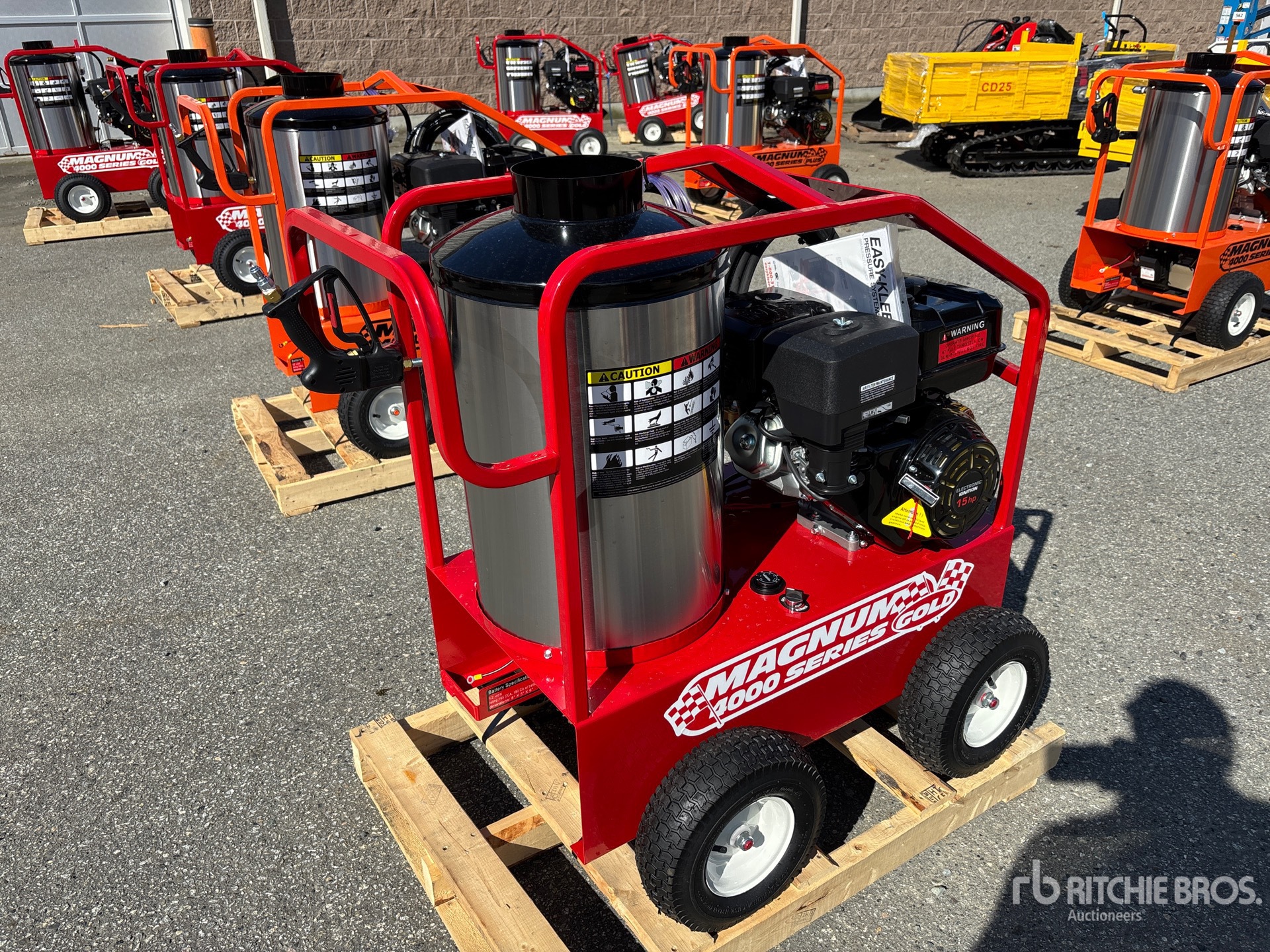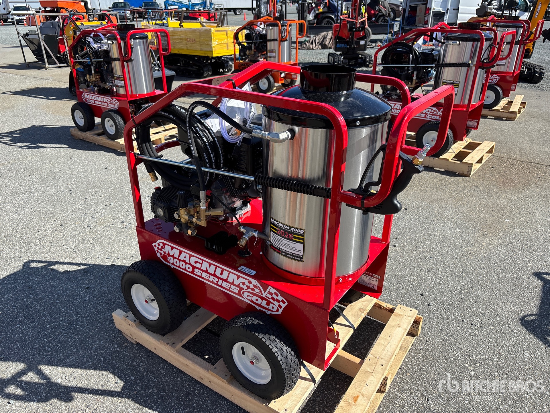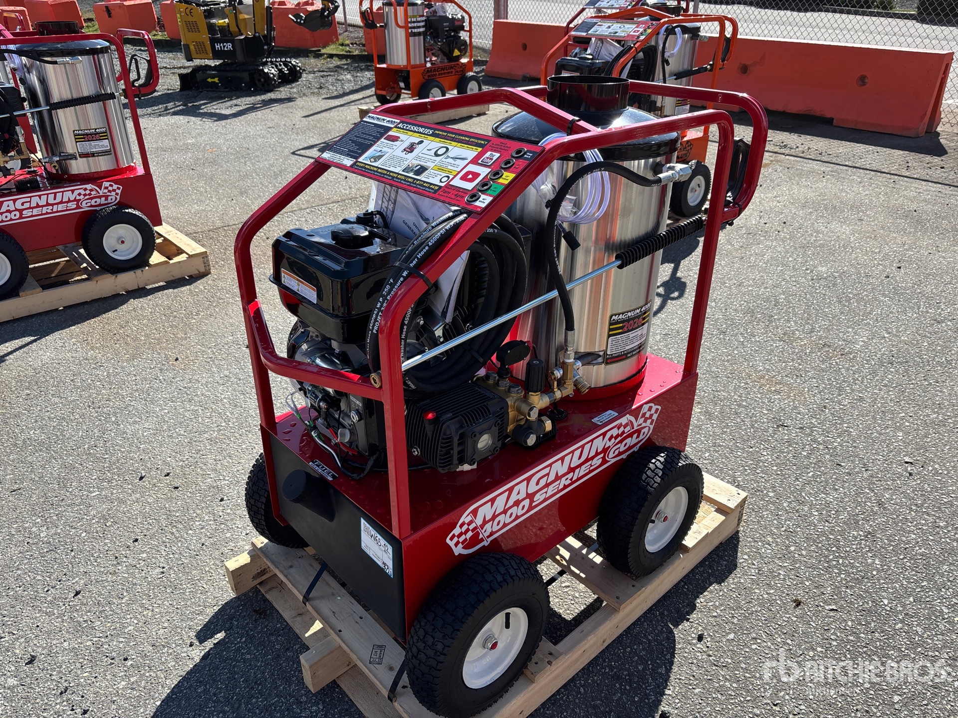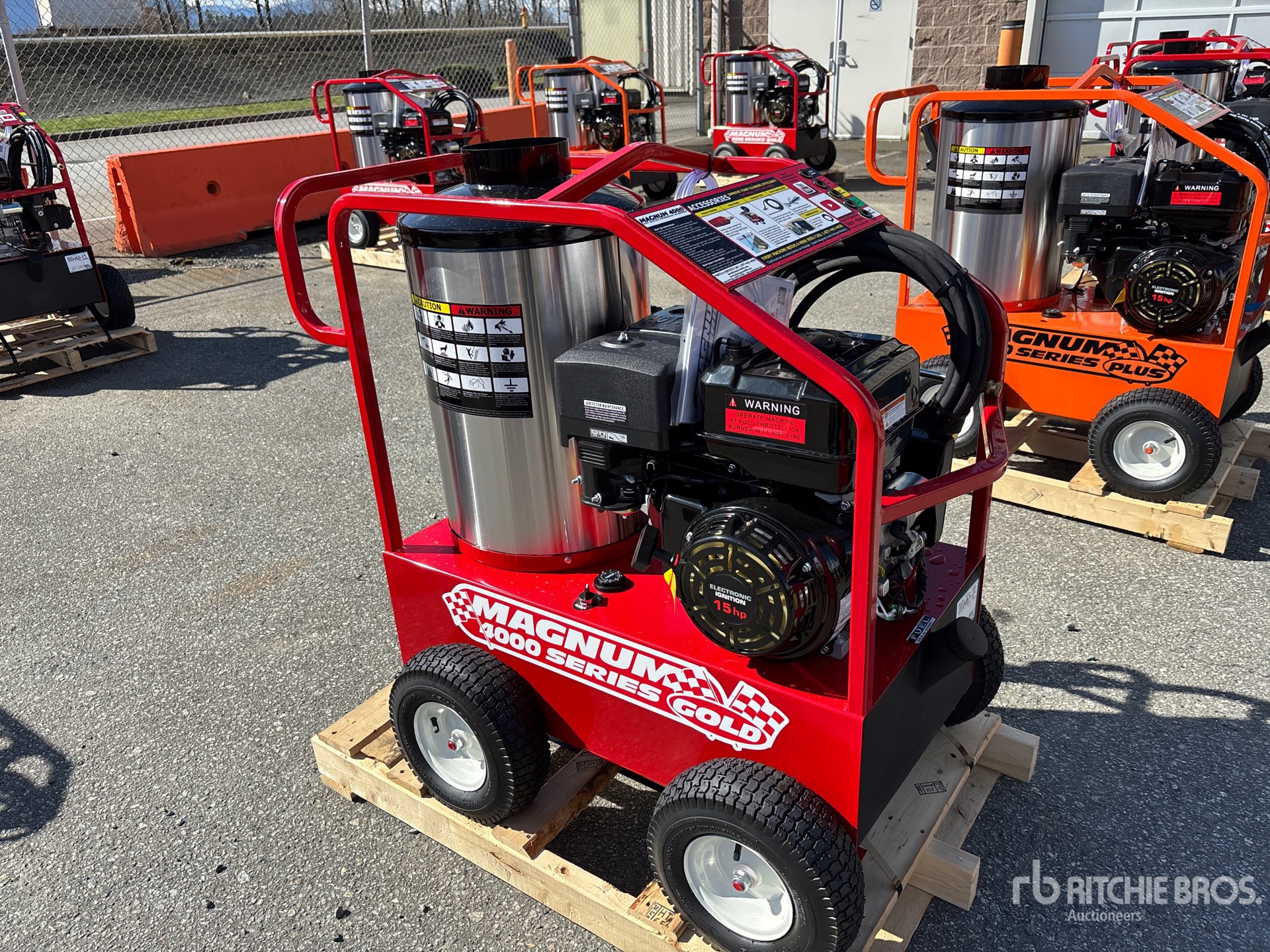 4000 psi Rating, Water Heater, Hose, Spray Wand, 15 hp 420 cc Gasoline Engine, Product images displayed are stock photos. Item is new/unused.