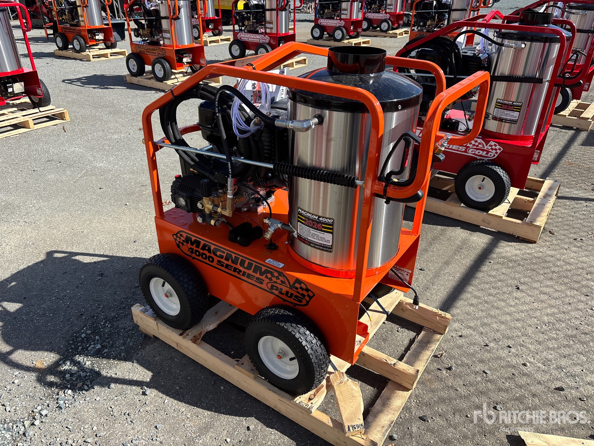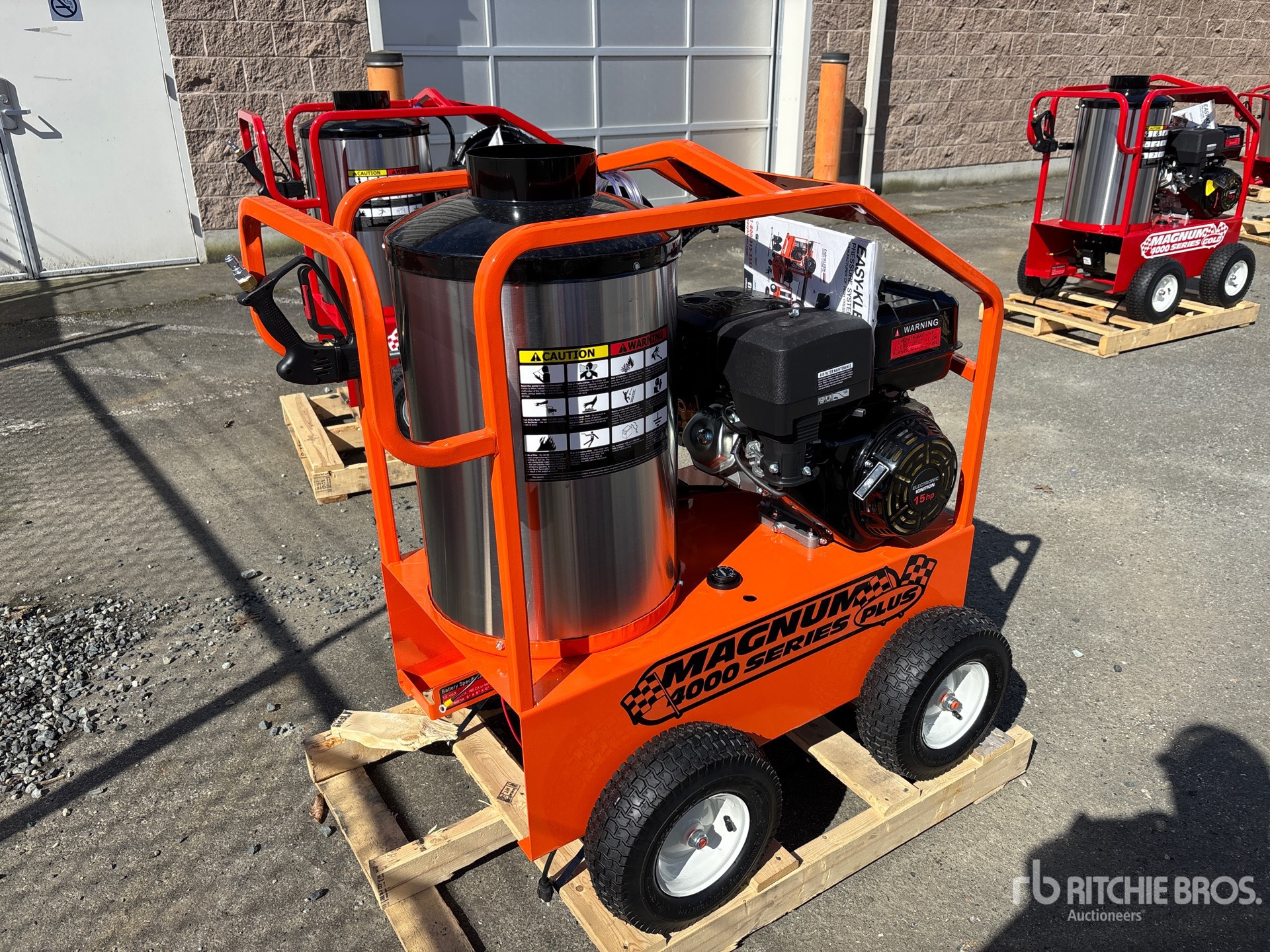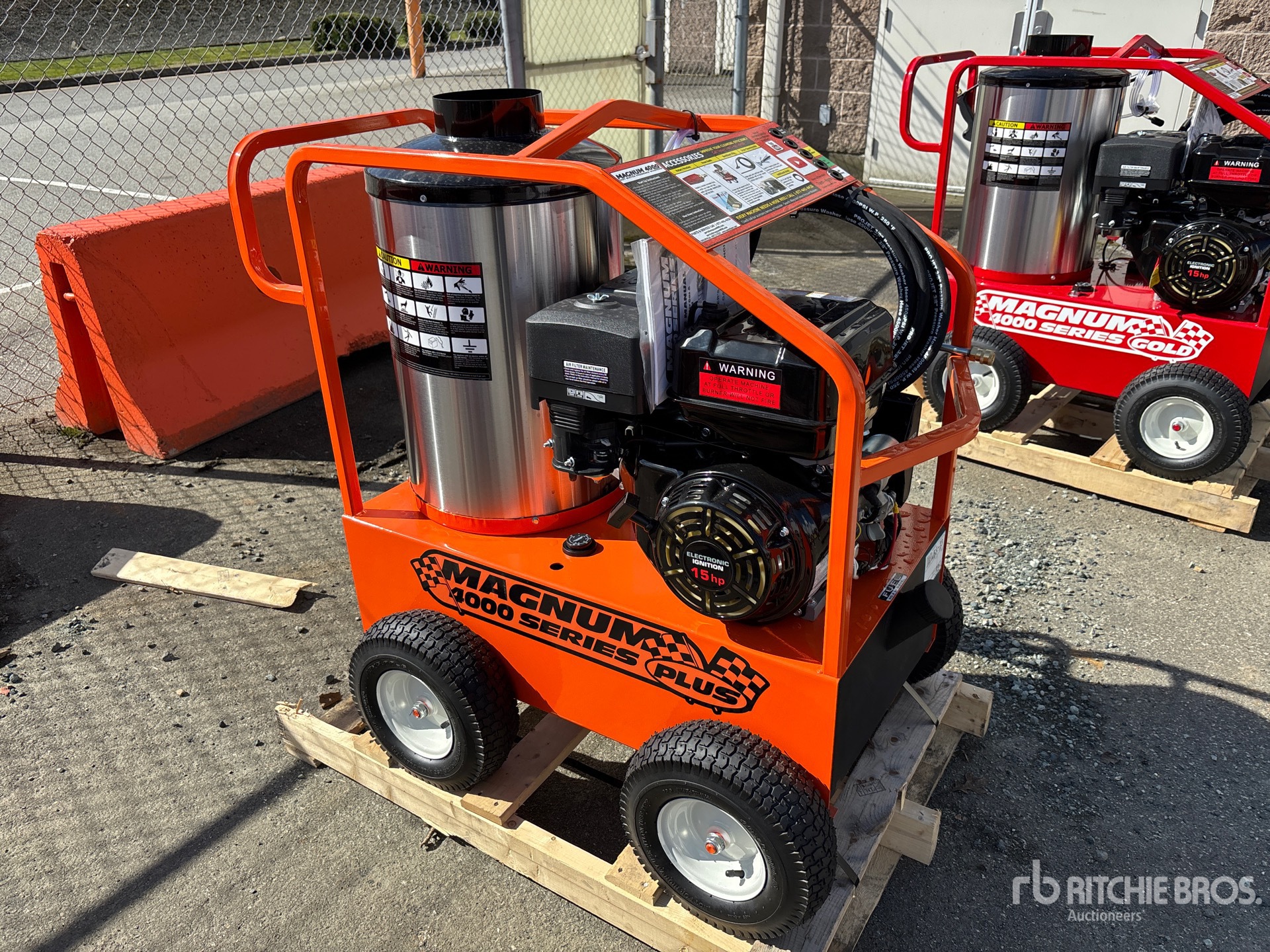 4000 psi Rating, Water Heater, Hose, Spray Wand, 15 hp 420 cc Gasoline Engine, Product images displayed are stock photos. Item is new/unused.