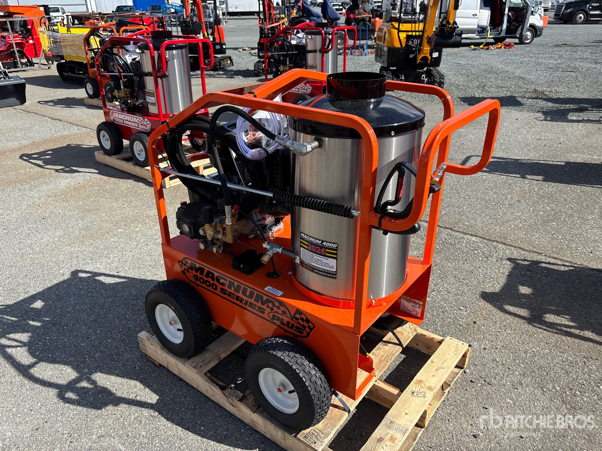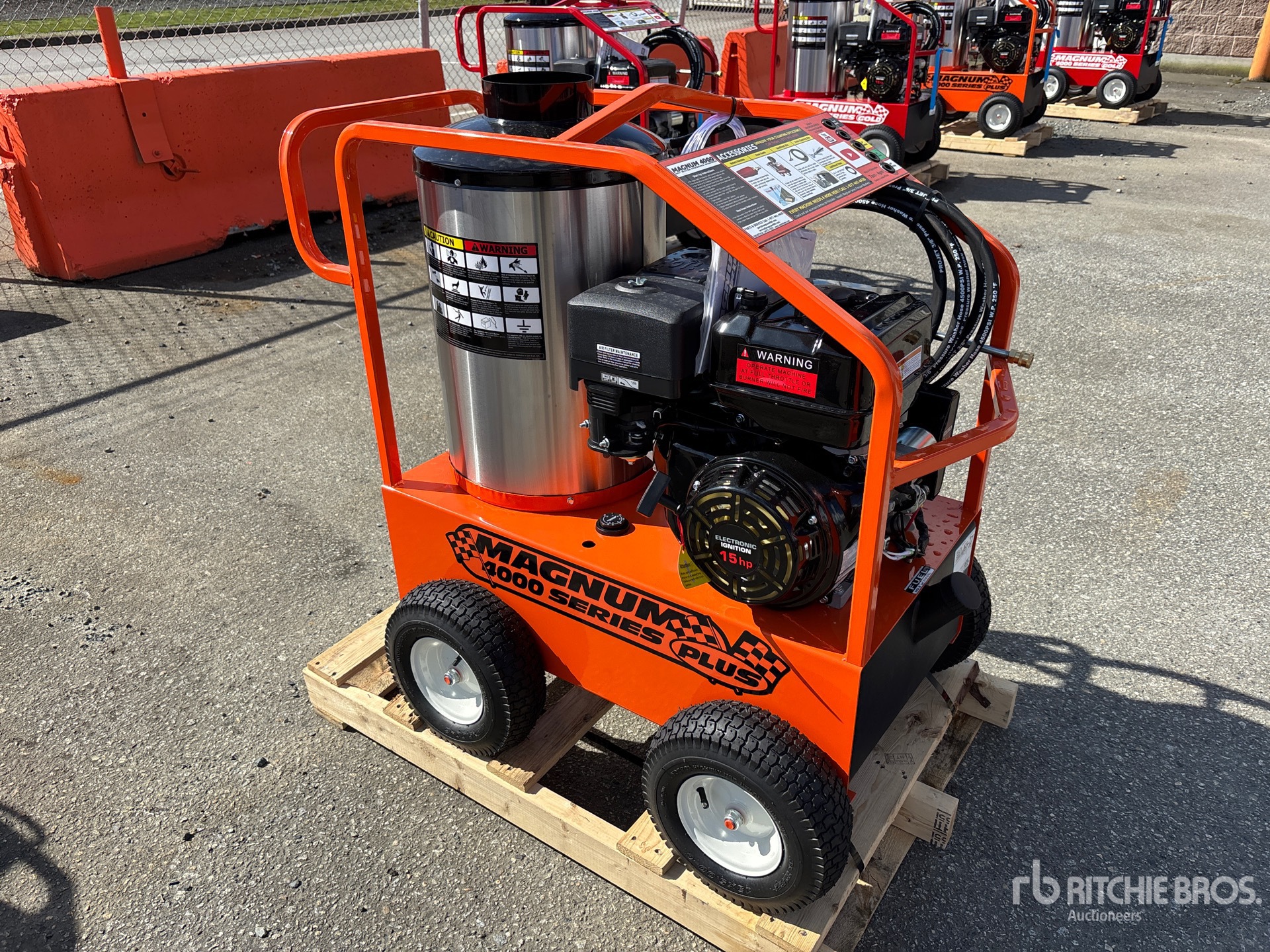 4000 psi Rating, Water Heater, Hose, Spray Wand, 15 hp 420 cc Gasoline Engine, Product images displayed are stock photos. Item is new/unused.
