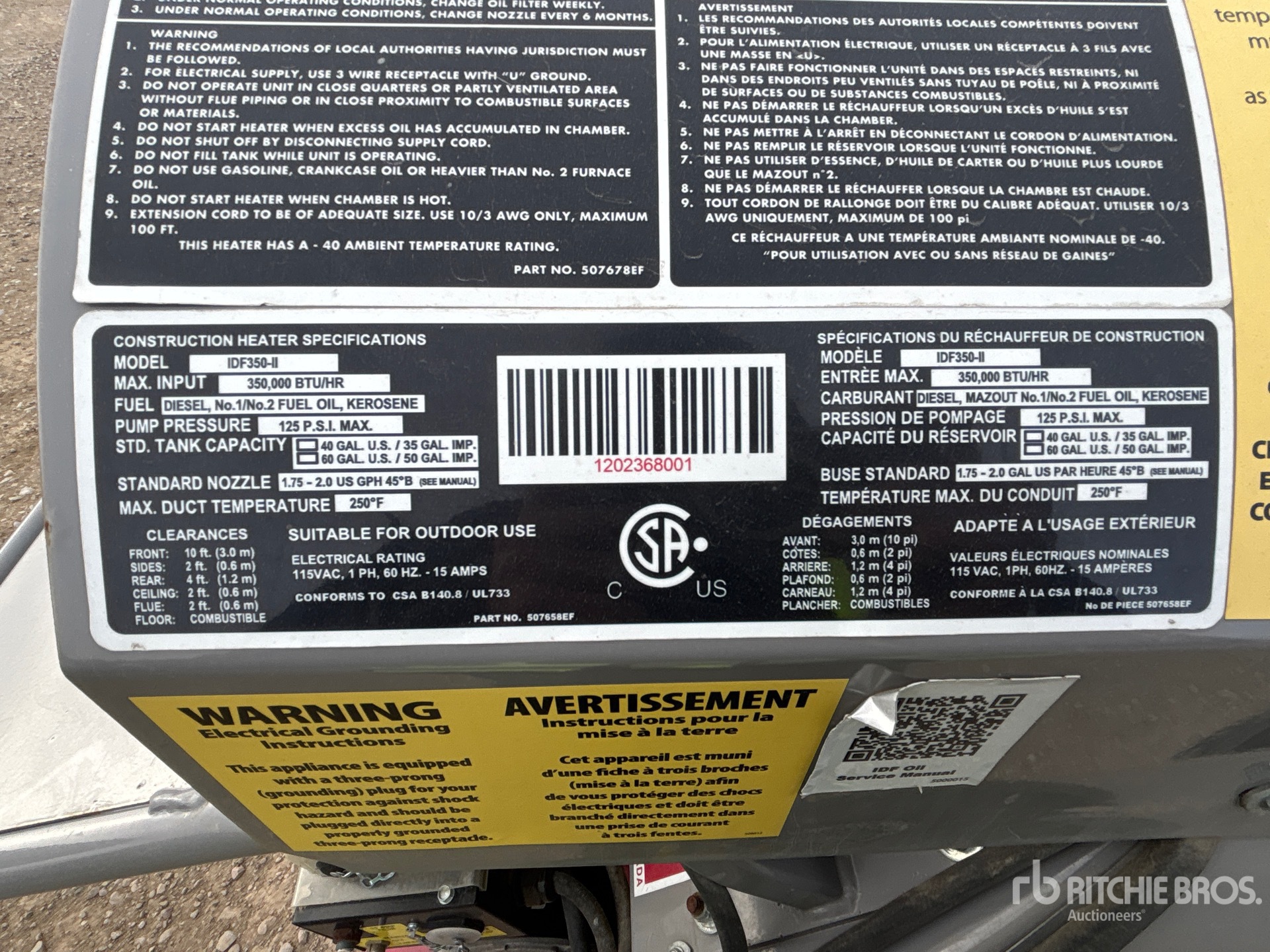 De gedetailleerde informatie over het materieel is beperkt, en Ritchie Bros. Auctioneers heeft geen andere aspecten of onderdelen van het materieel geïnspecteerd dan uitdrukkelijk in dit document vermeld. Tenzij uitdrukkelijk vermeld, geven wij geen verklaringen of garanties, expliciet of impliciet, met betrekking tot het materieel of de onderdelen ervan, met inbegrip van, maar niet beperkt tot, verklaringen of garanties met betrekking tot functionaliteit, conformiteit of naleving van veiligheidsnormen of -vereisten van een toepasselijke autoriteit of regelgevende instantie, geschiktheid voor een bepaald doel of verkoopbaarheid. U wordt ten zeerste aangeraden uw eigen gedetailleerde inspectie van het materieel uit te voeren voordat u een bod plaatst.