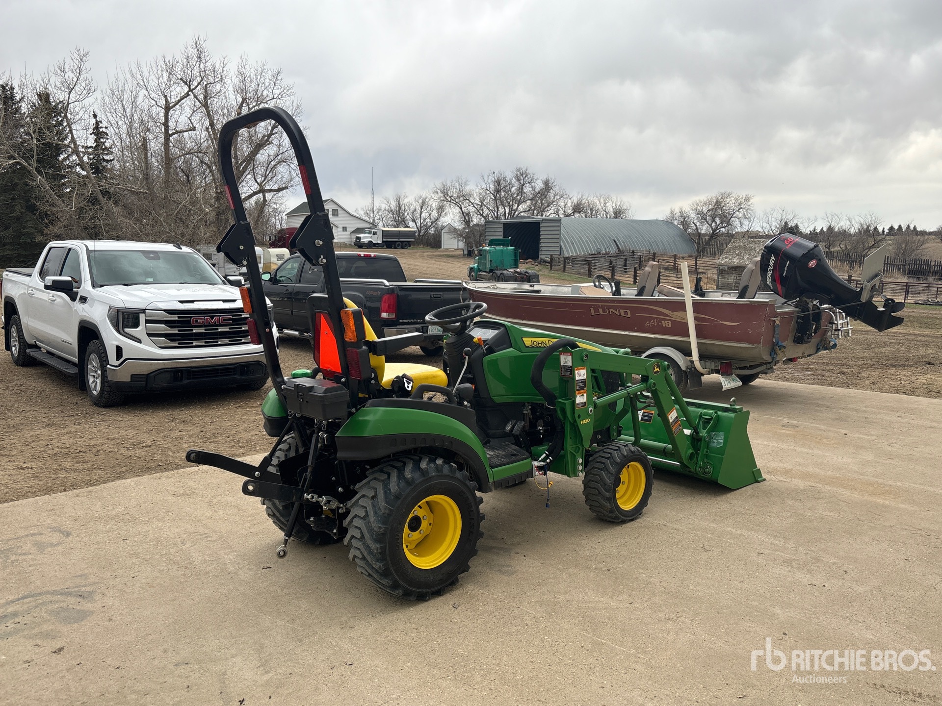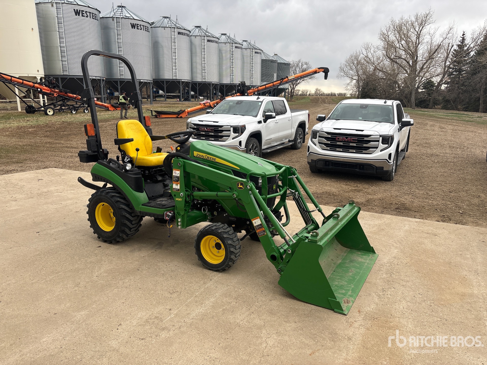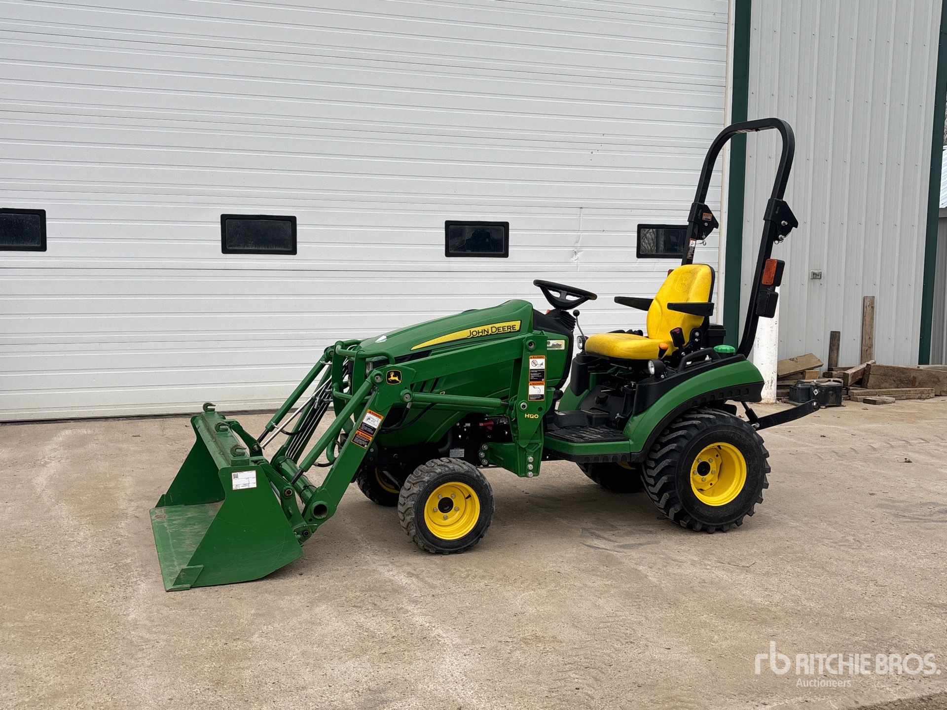 Hydrostatic Drive, John Deere H120 Loader w/Joystick, 53 in Bucket, 540 PTO, 3-Point Hitch, 18X8.50-10 Front Tires, 26X12.00-12 Rear Tires