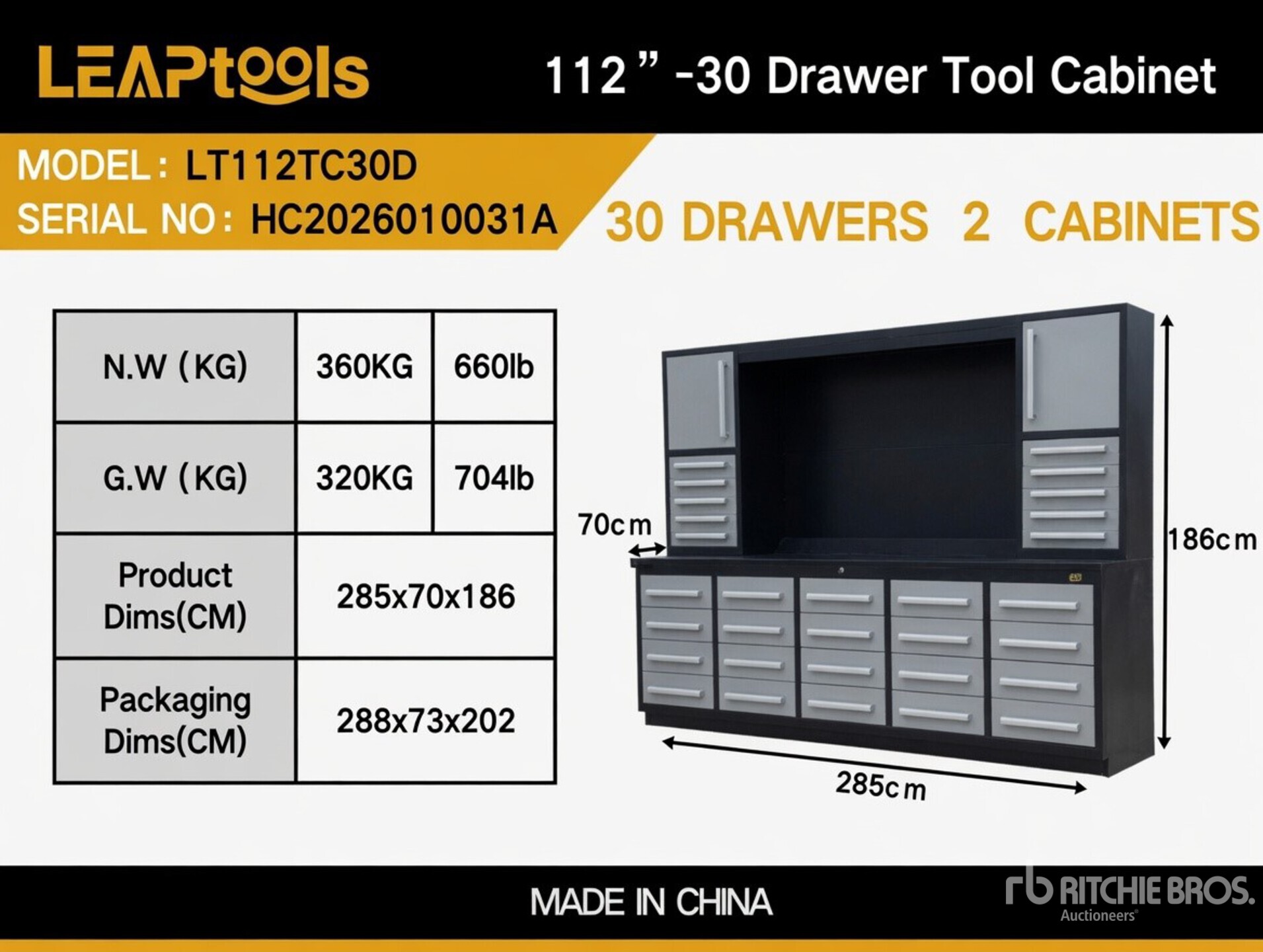 2850 mm, 30 Drawers
