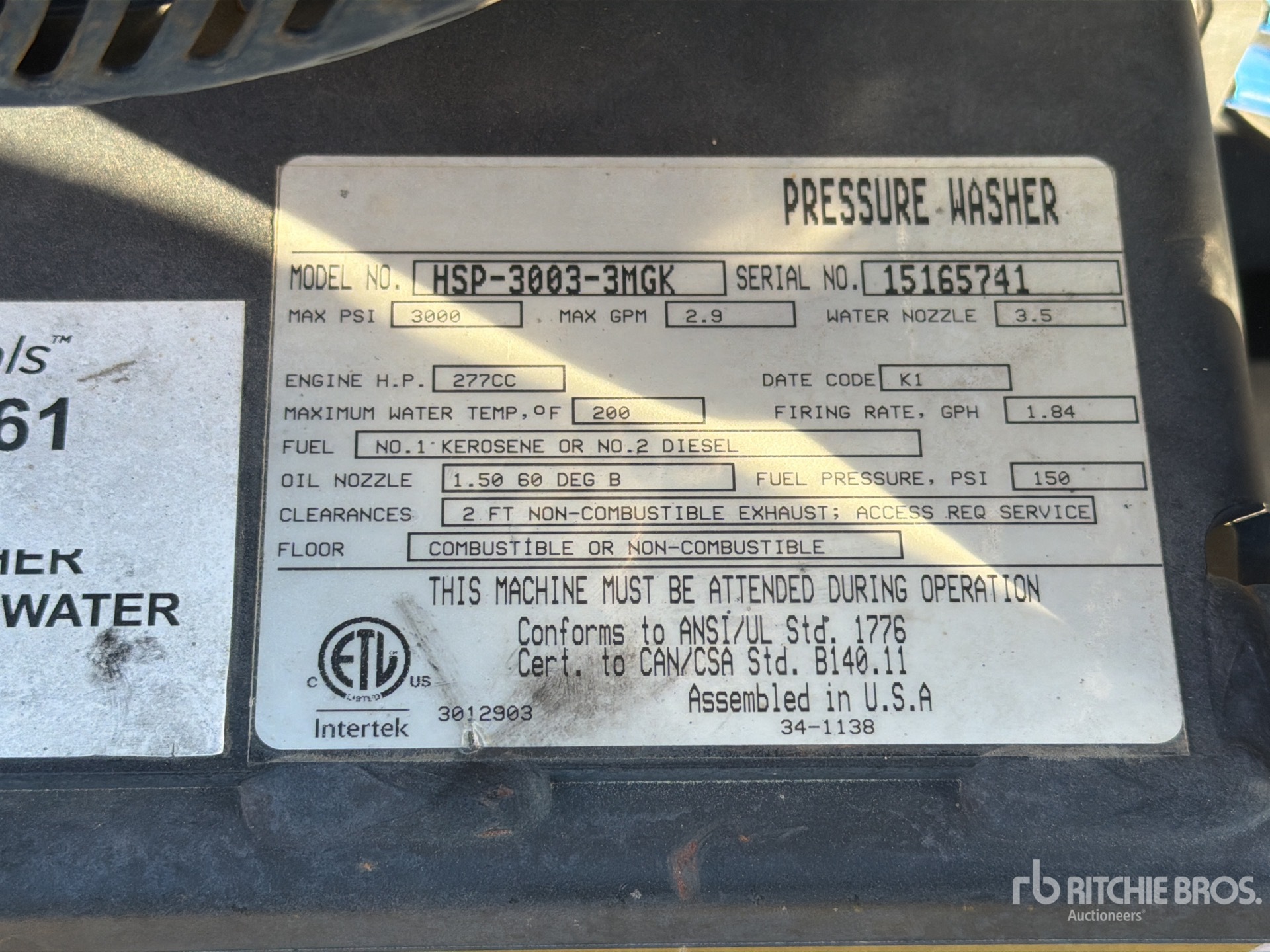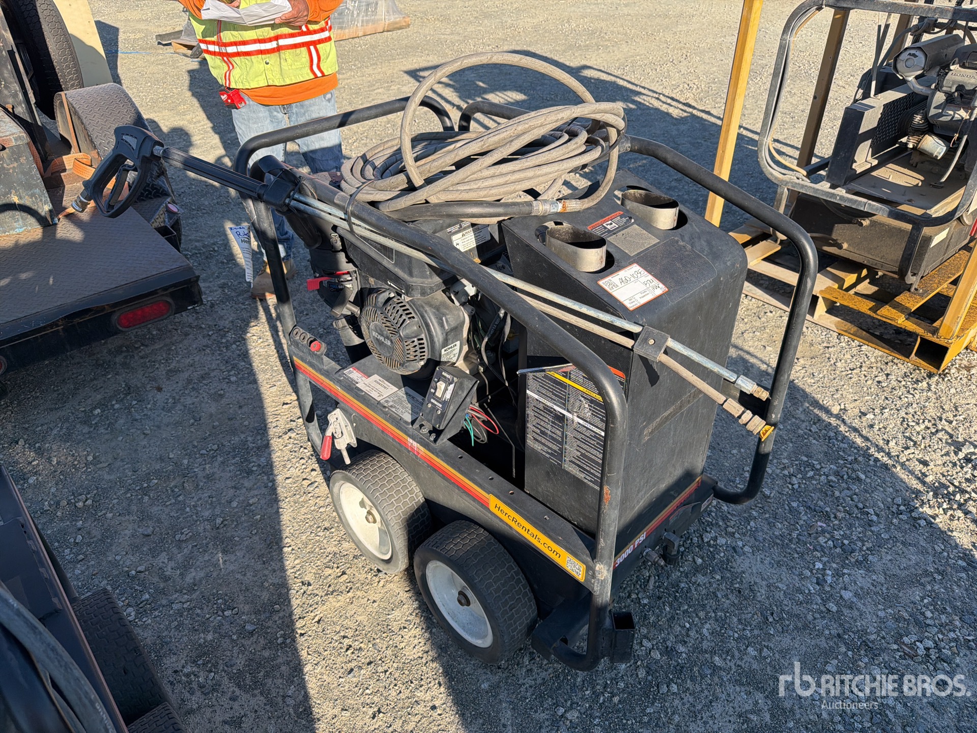 3000 psi Rating, Water Heater, 2.9 gal Water Supply, Hose, Spray Wand, Kohler Gasoline Engine