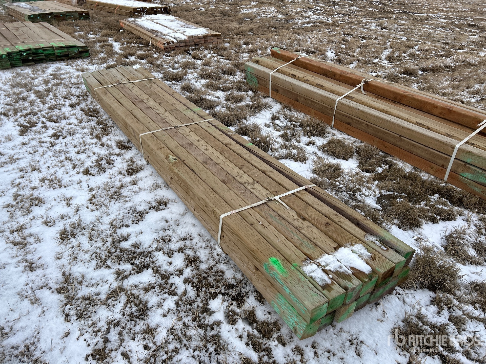 Quantity of (14) 4 x 4 x 12 ft Treated Timmerhout
