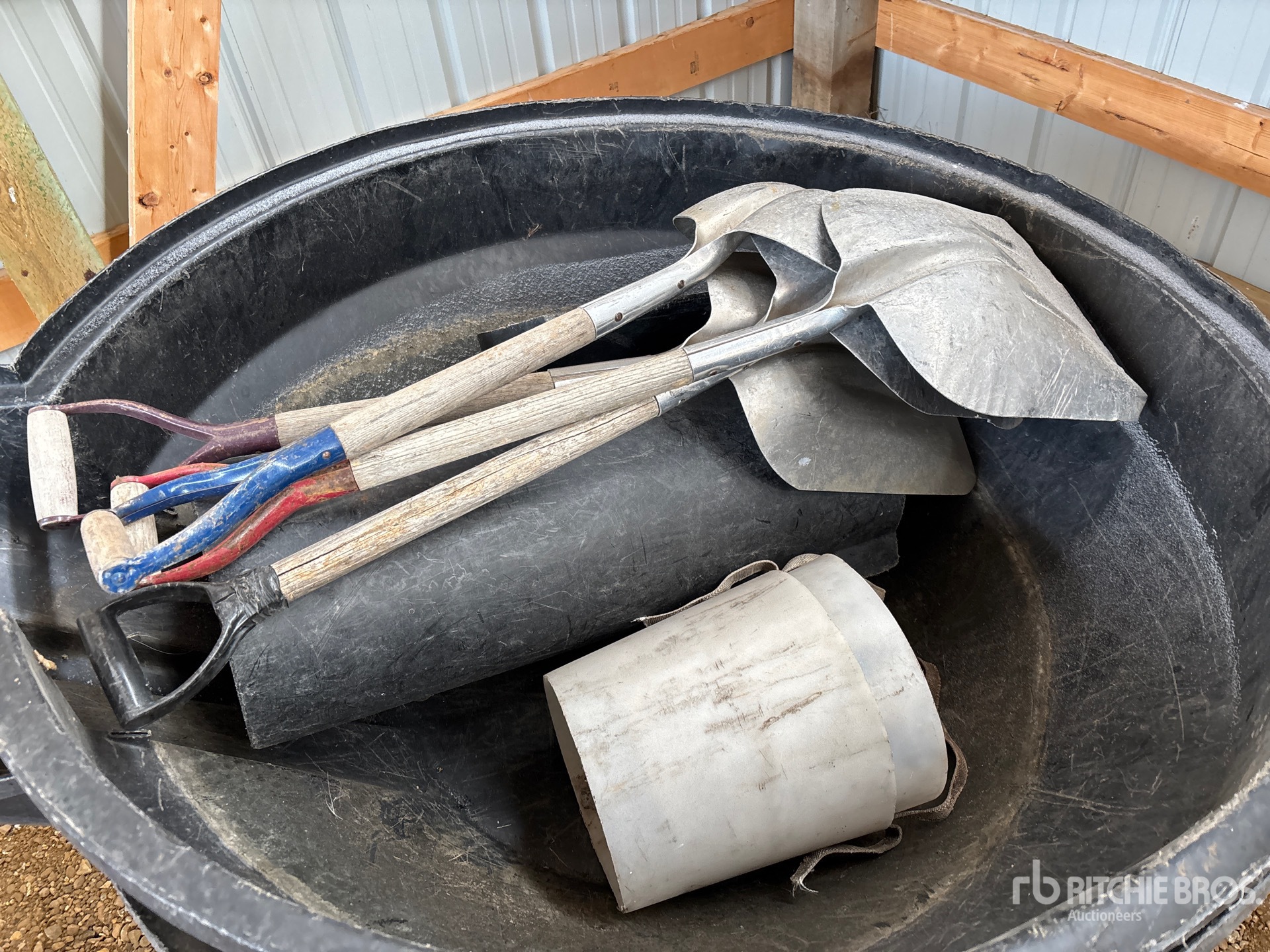 (4) Shovels, (2) Poly Spout