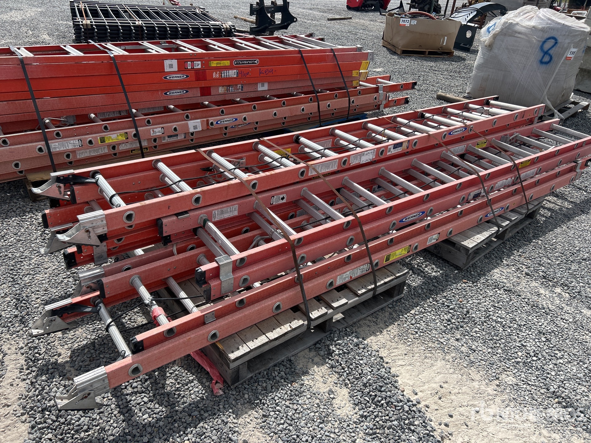 Maten worden slechts bij benadering gegeven. De werkelijke afmetingen onder belasting kunnen variëren afhankelijk van de hoogte van de vrachtwagen/aanhanger en de configuratie/positie van de geladen machine. Het is de verantwoordelijkheid van de koper om alle ladingen te meten voordat deze onze veilinglocatie verlaten, om te garanderen dat de lading veilig is voor transport. Alle maten moeten door de koper worden gecontroleerd. Vertrouw niet op deze maten voor transportdoeleinden.