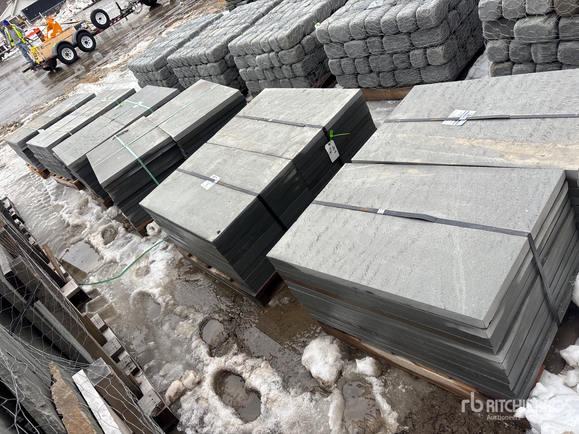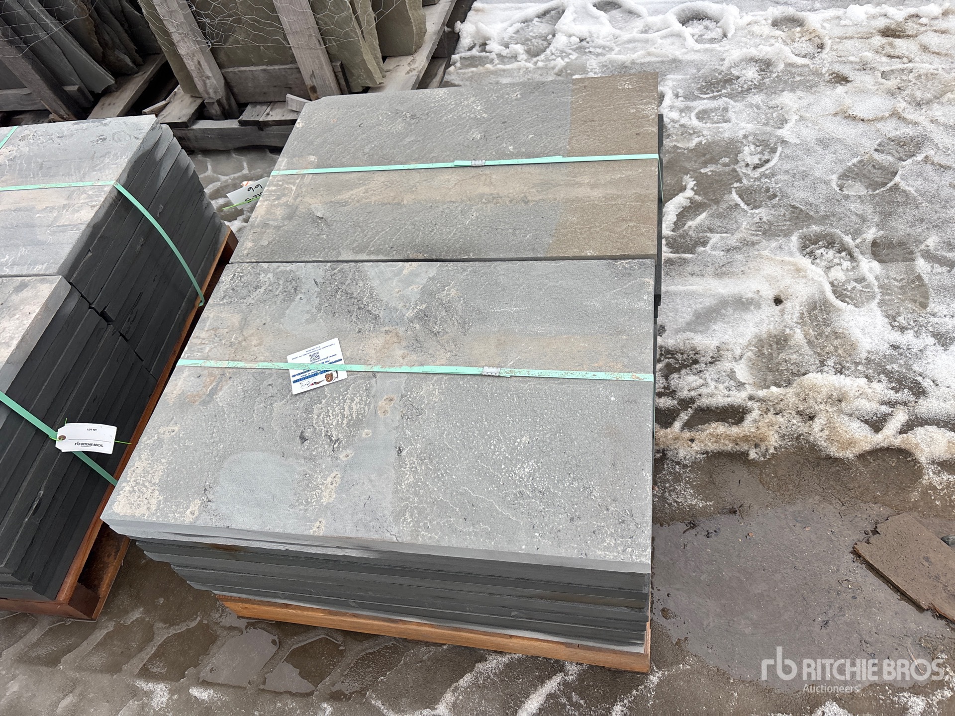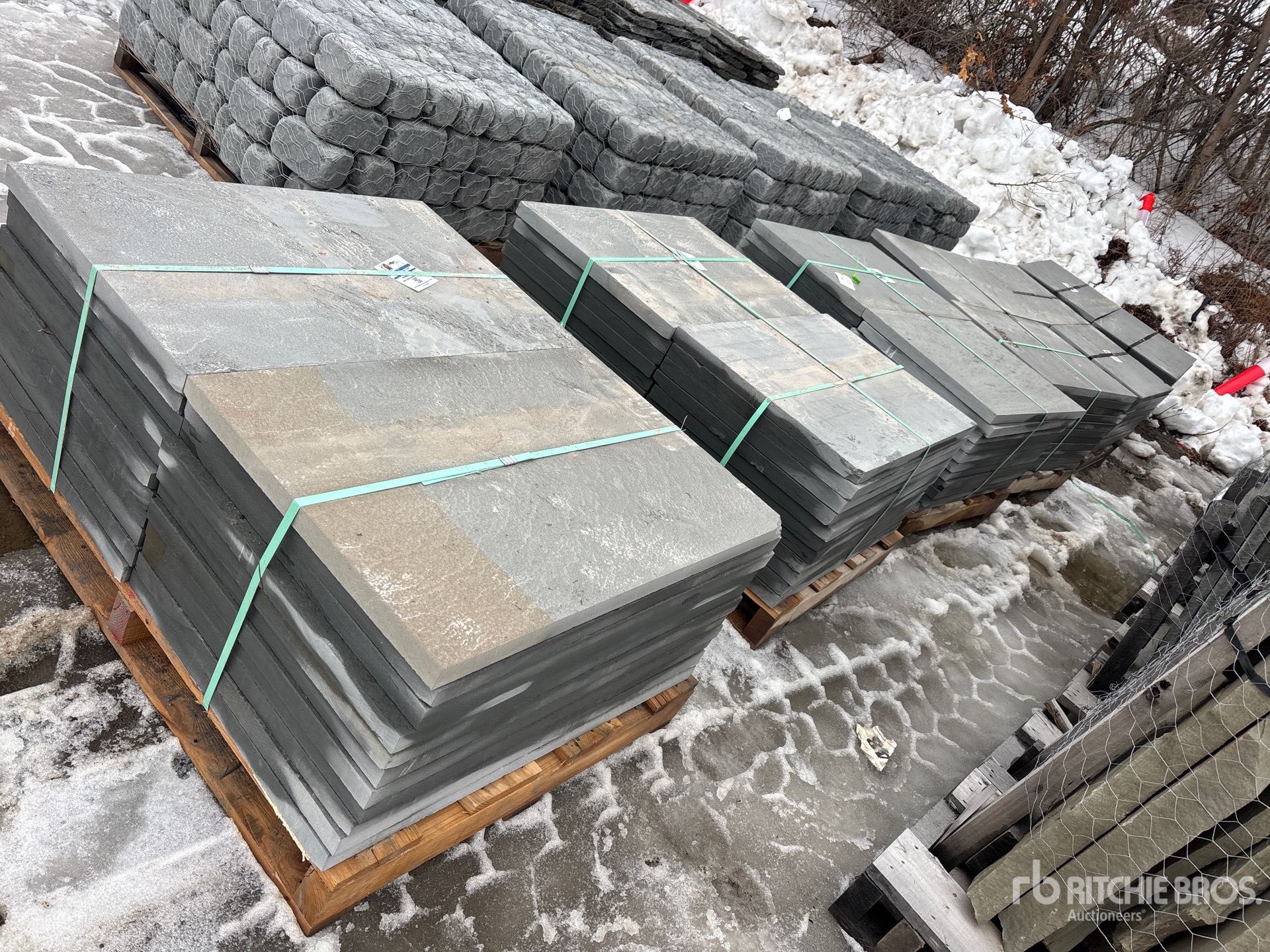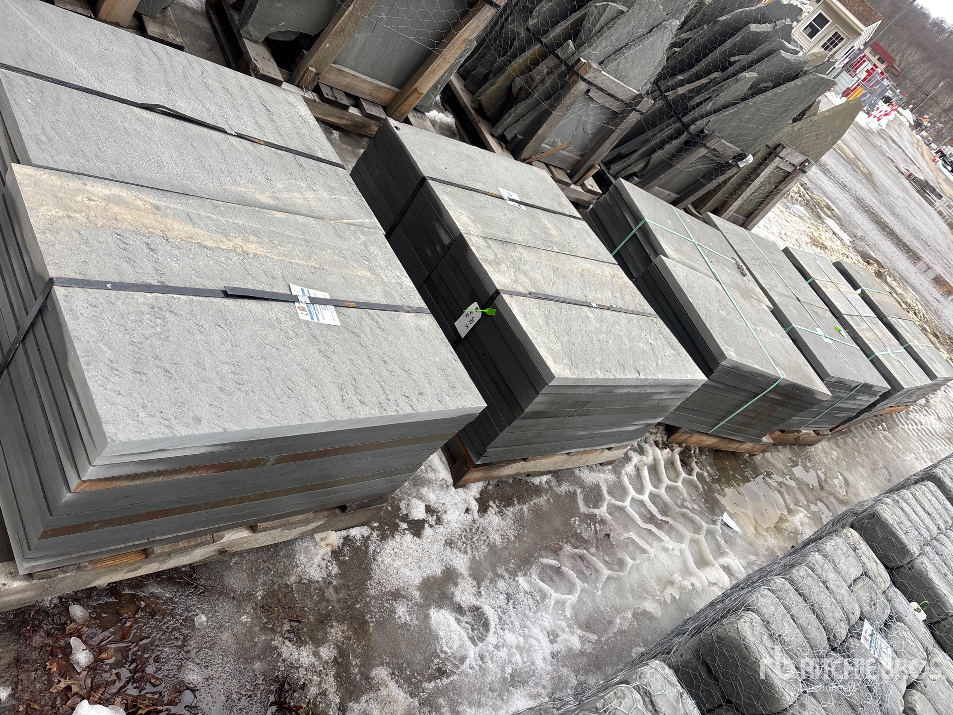 Quantity of (6) Pallets of 24 in x 36 in x 1.5 in Thermal Bluestone Pattern Blocks Steen (Unused)