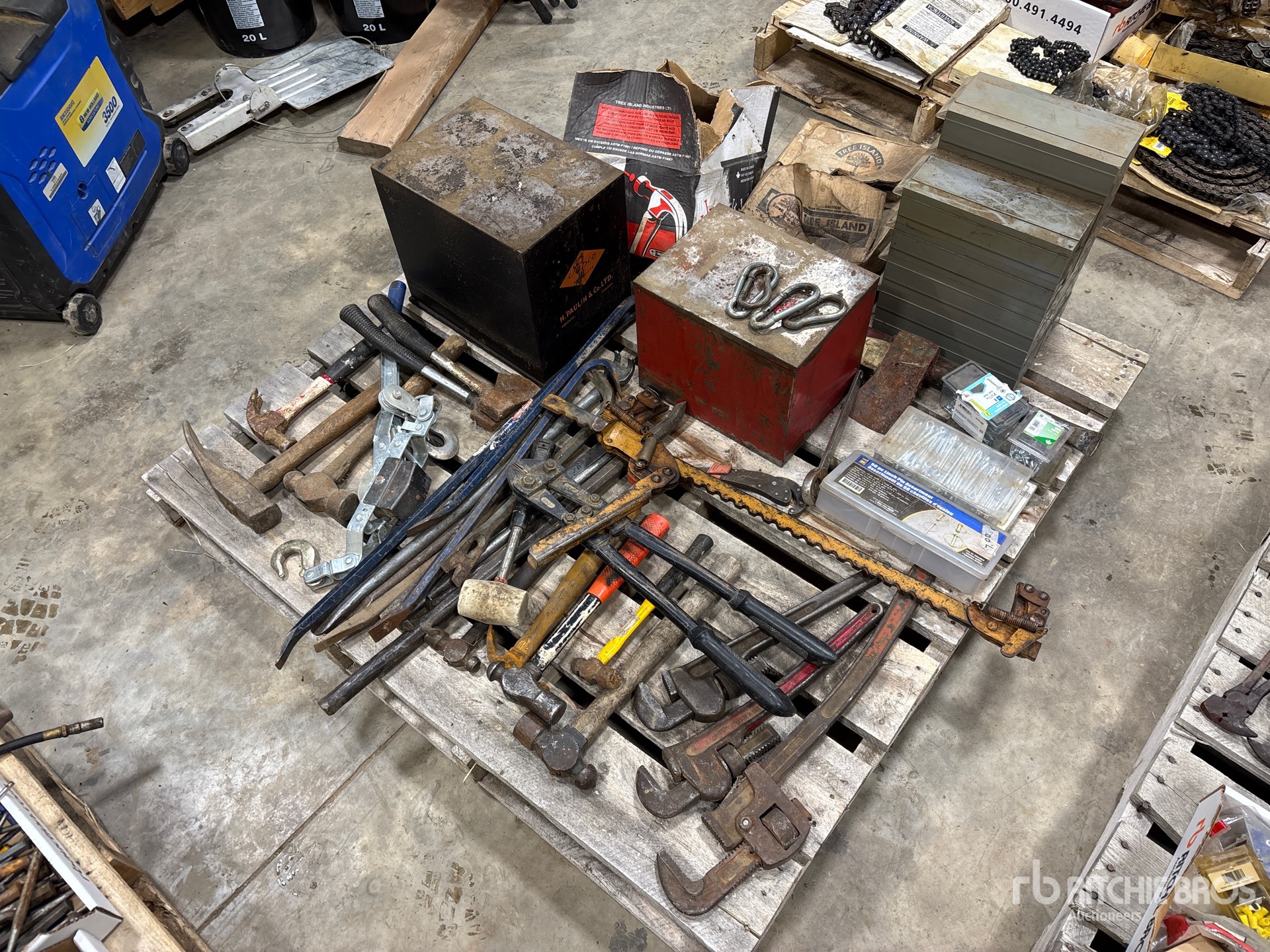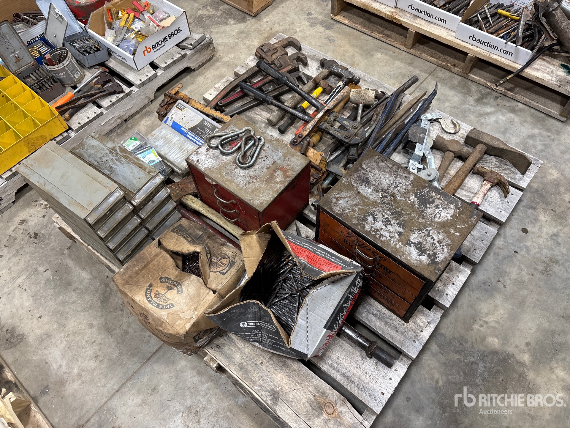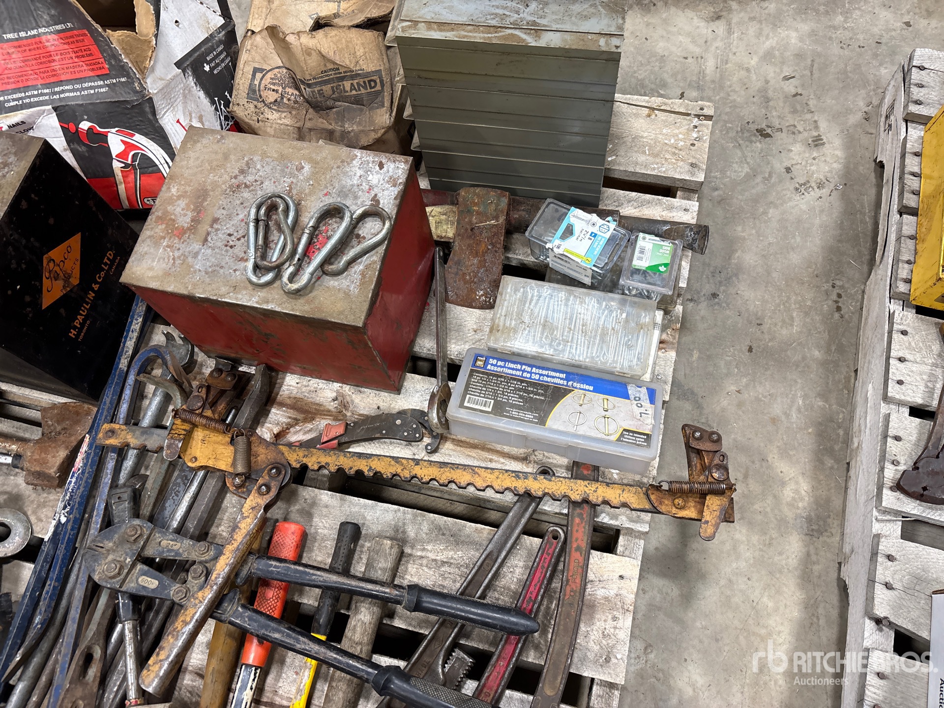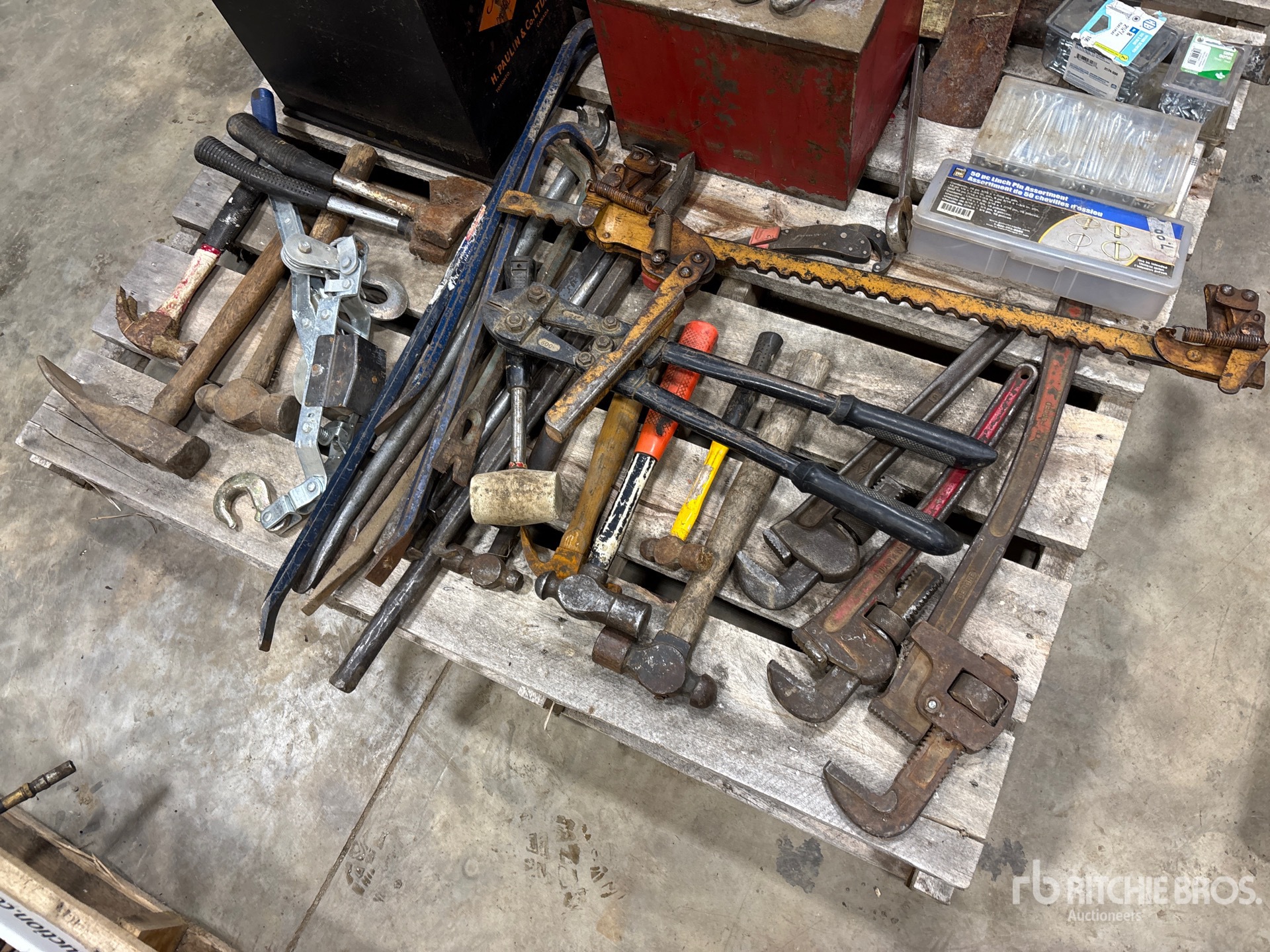 Pipe Wrench, Hammer, Linch Pin Assortment, Cotter Pin, Nails