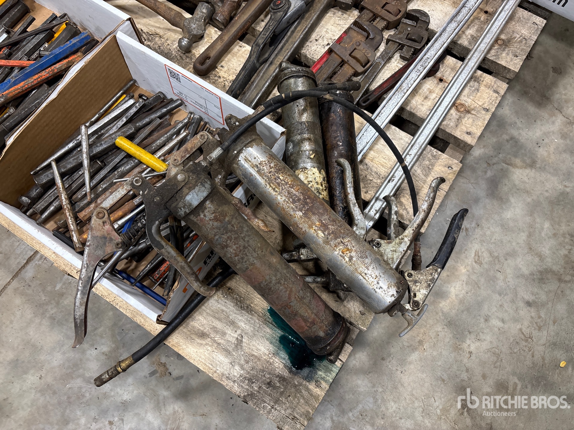 Pipe Wrench, Hammer, Wrenches, Chisels, Grease Gun, Pliers, Screwdrivers