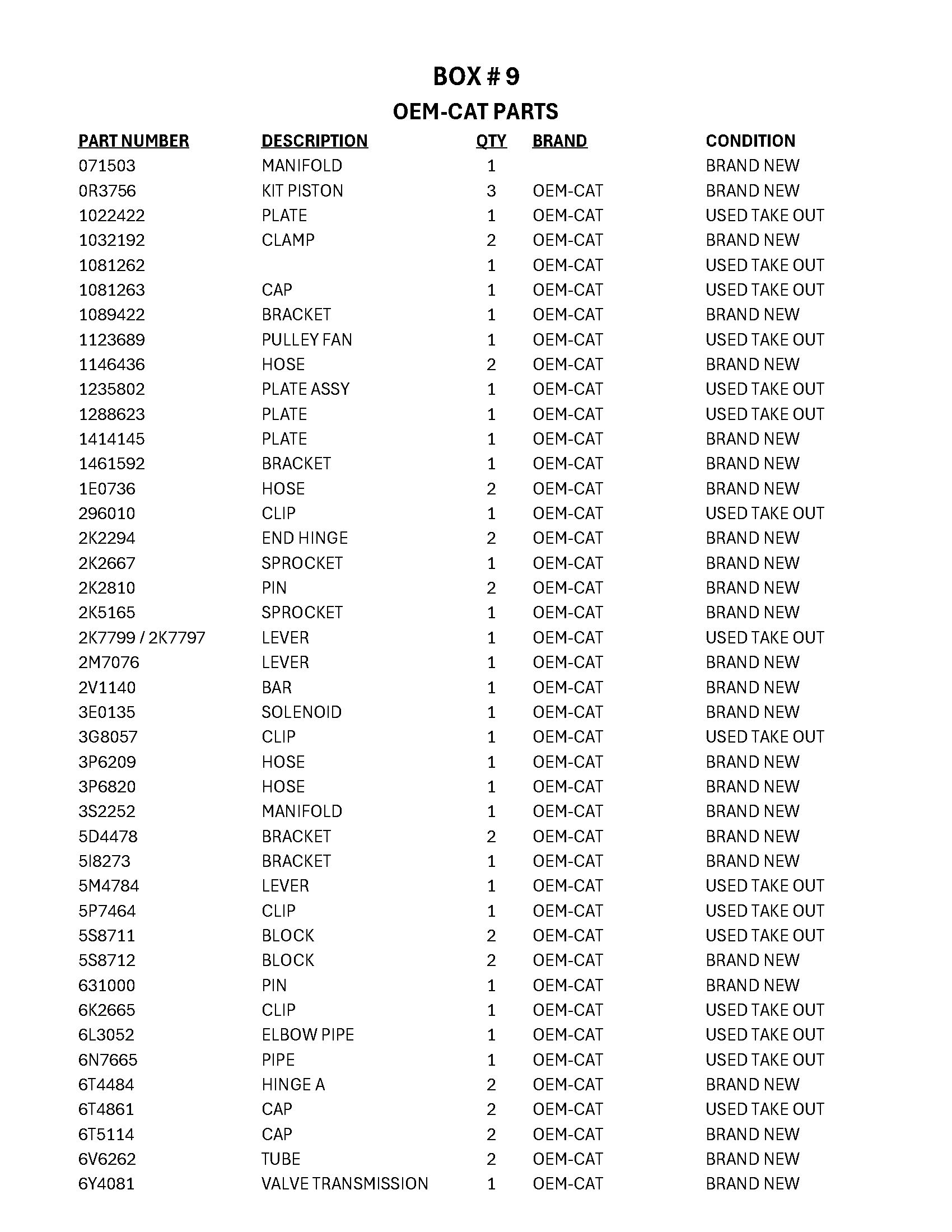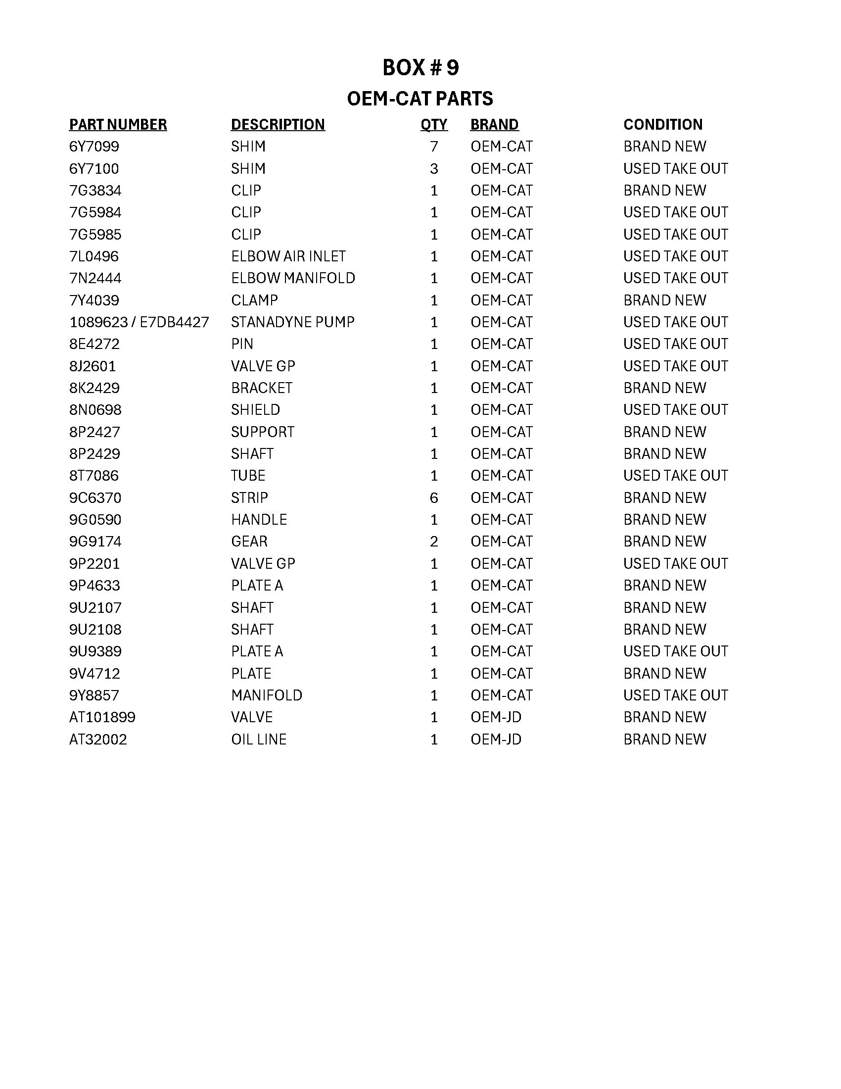 OEM Cat Parts, Clamps and Others