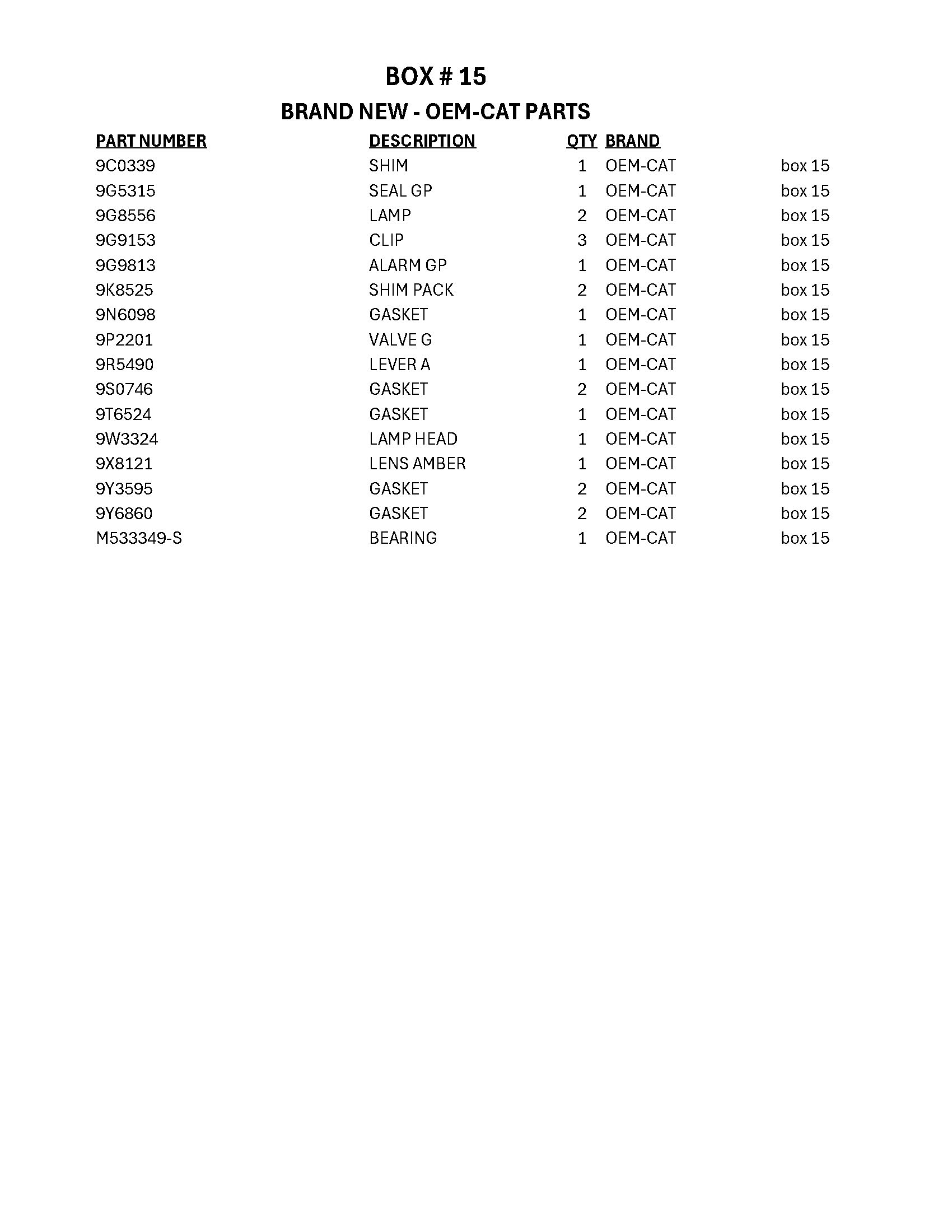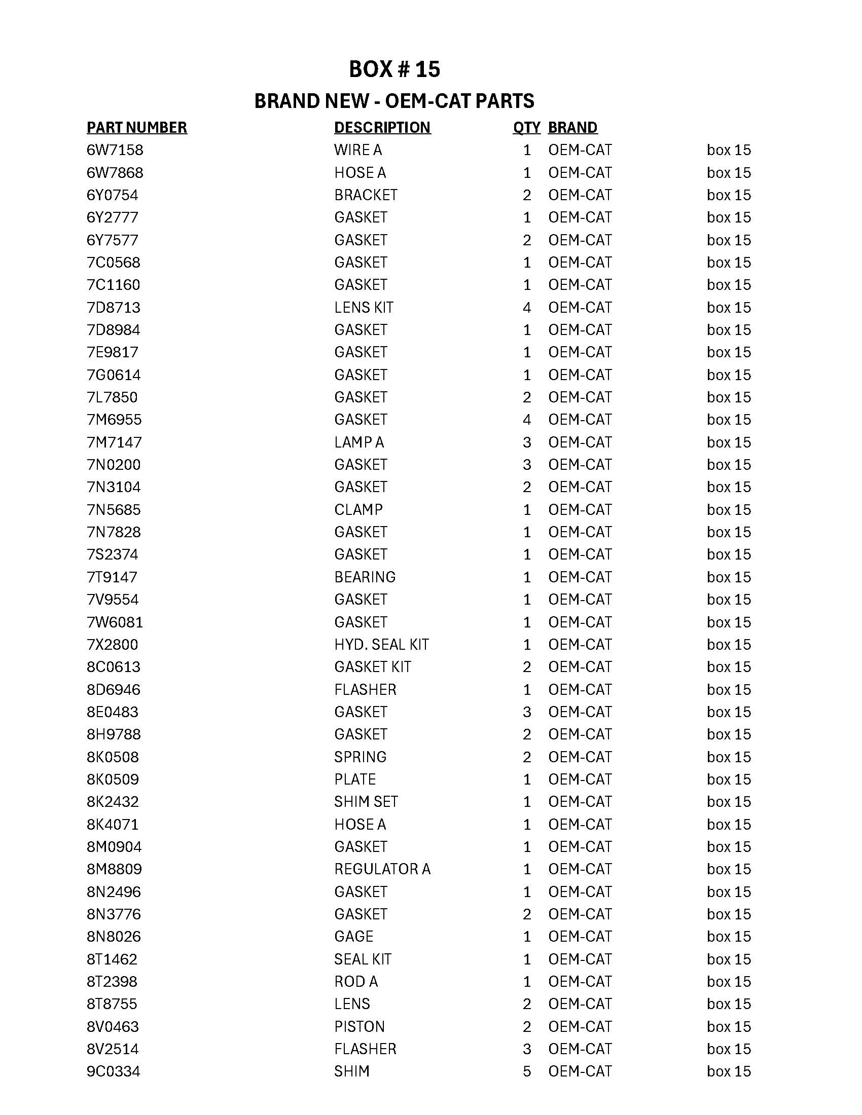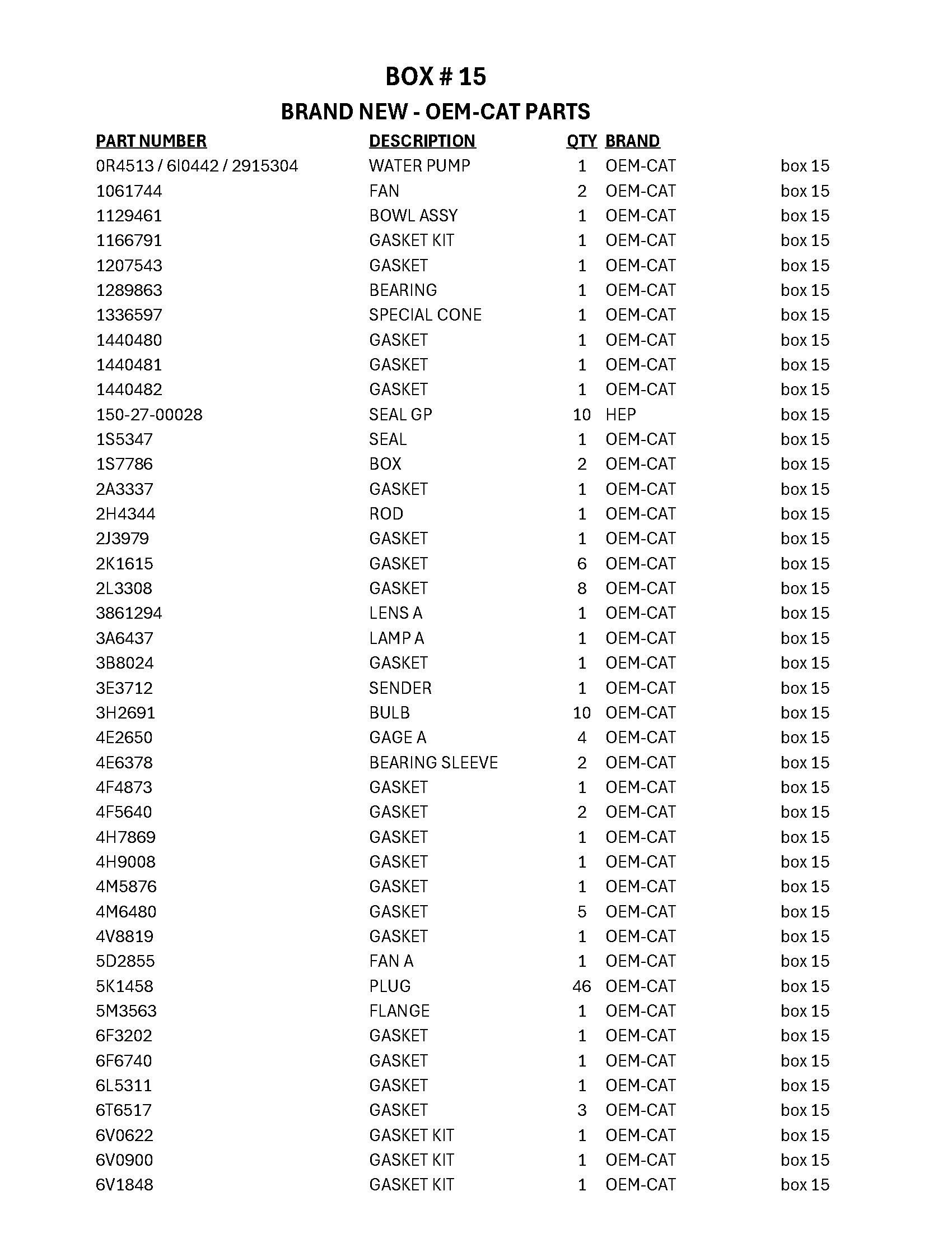 Quantity of Cat Parts (Unused)