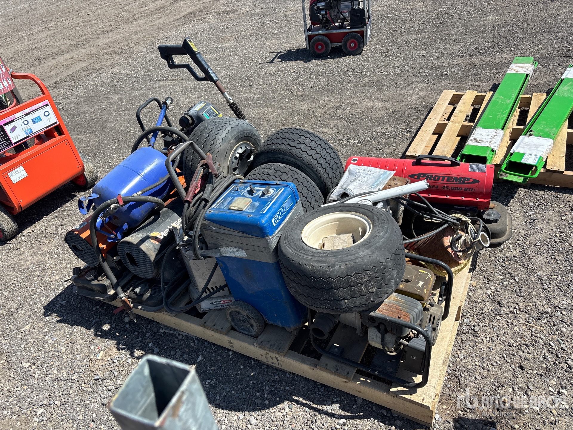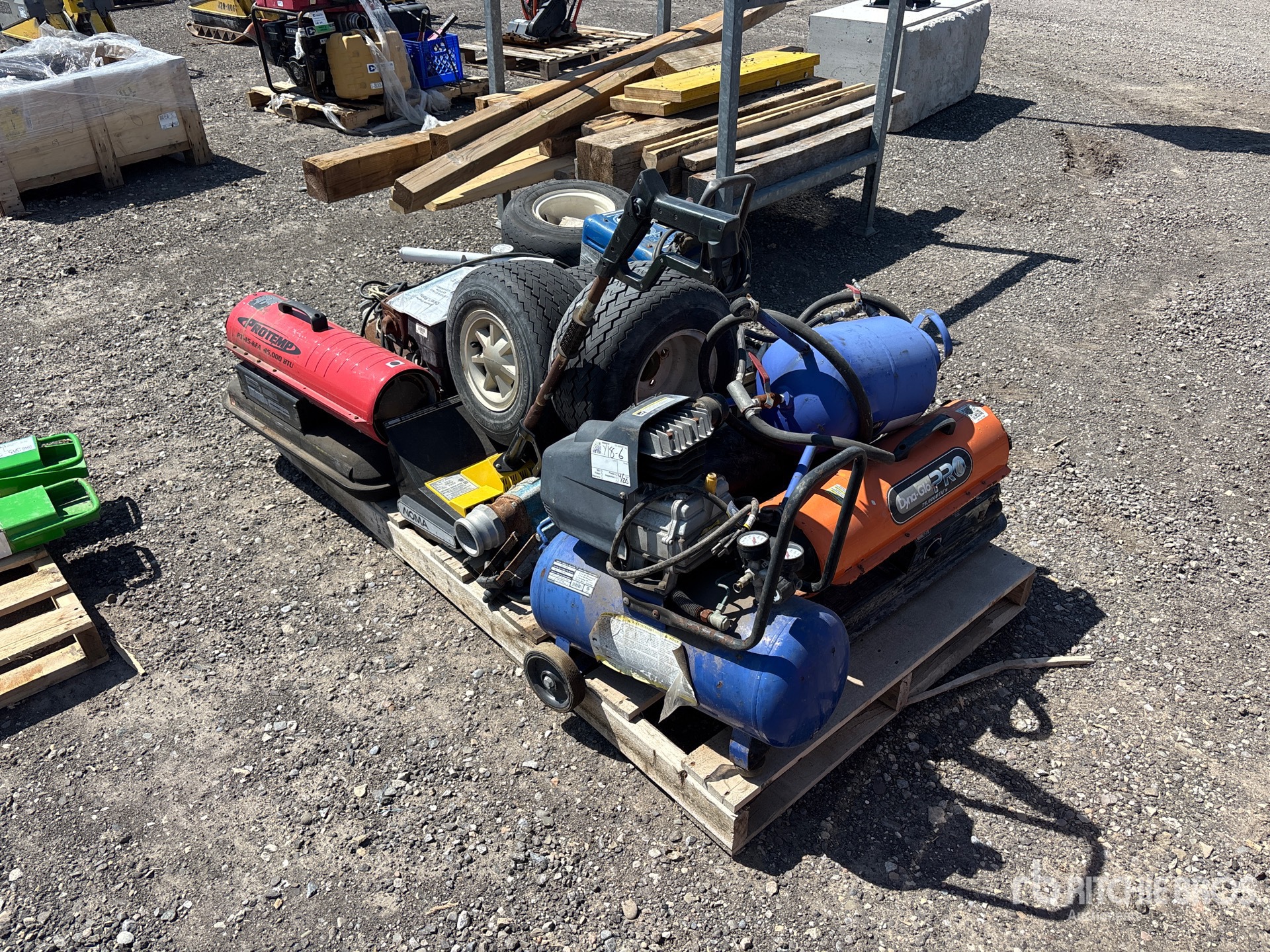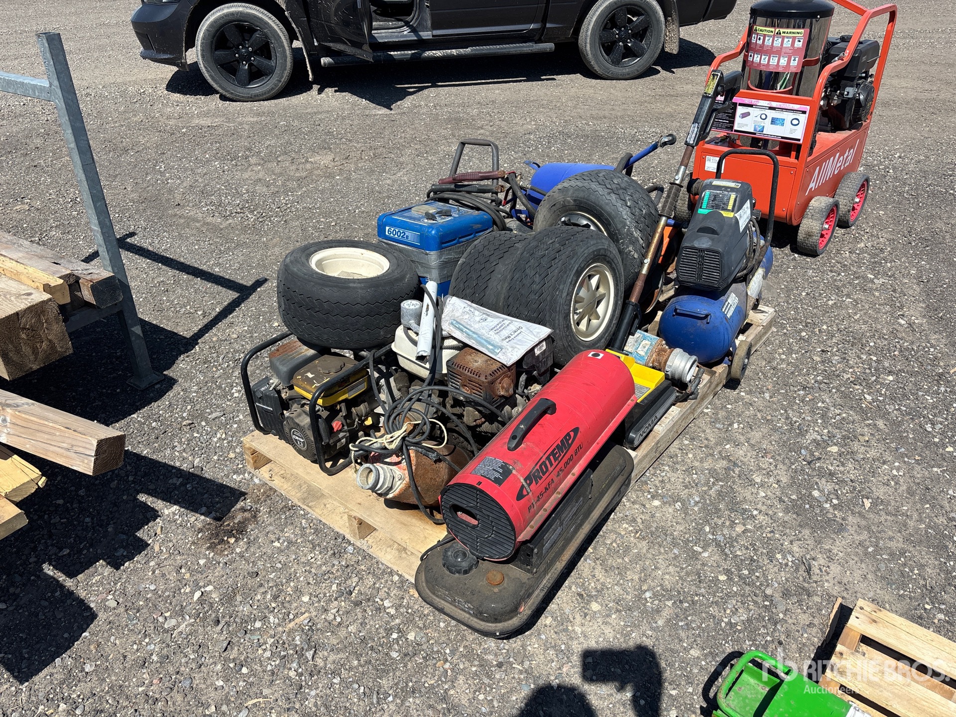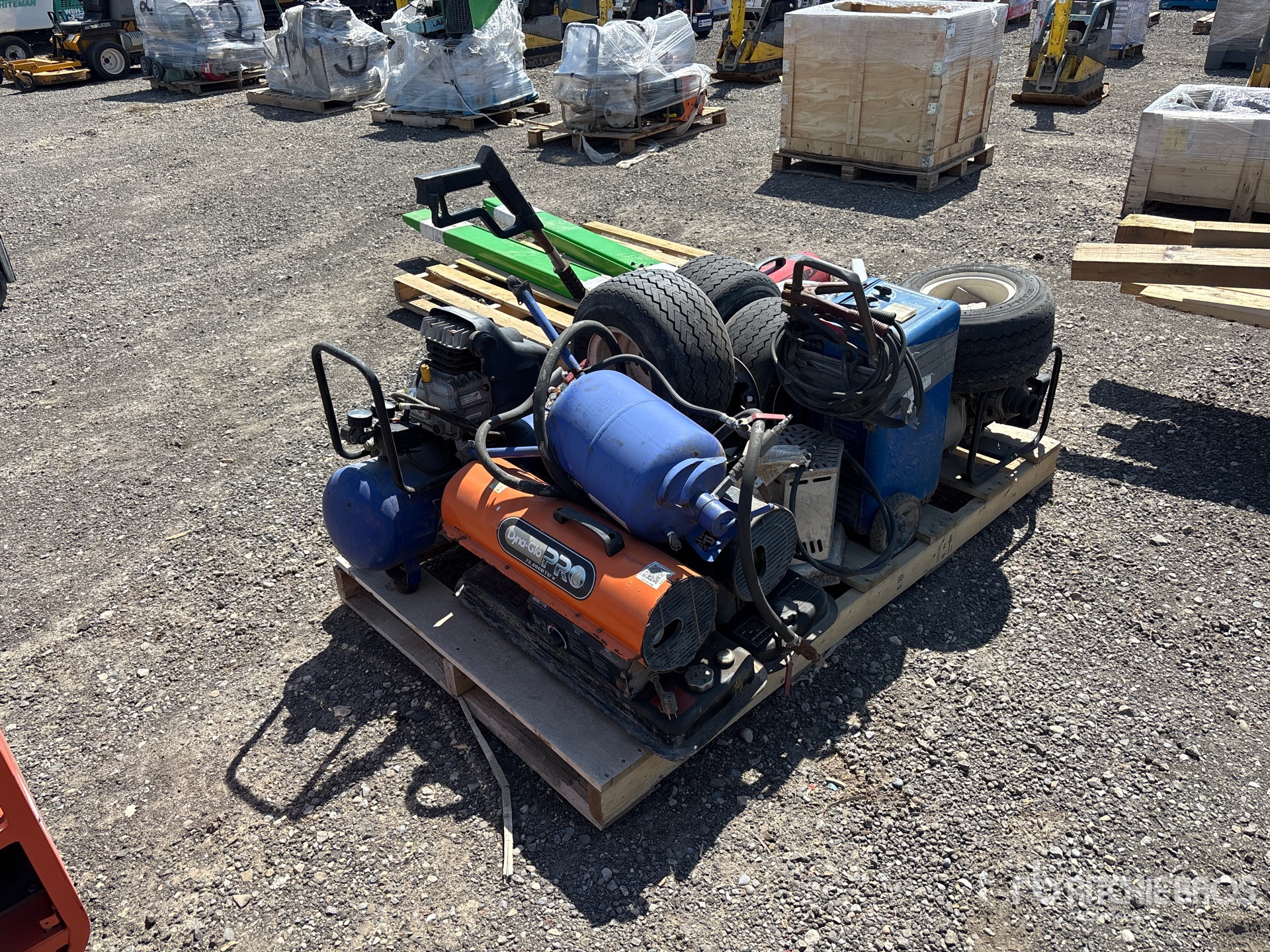 Air compressor, golf cart wheels, space heaters, welder, pumps