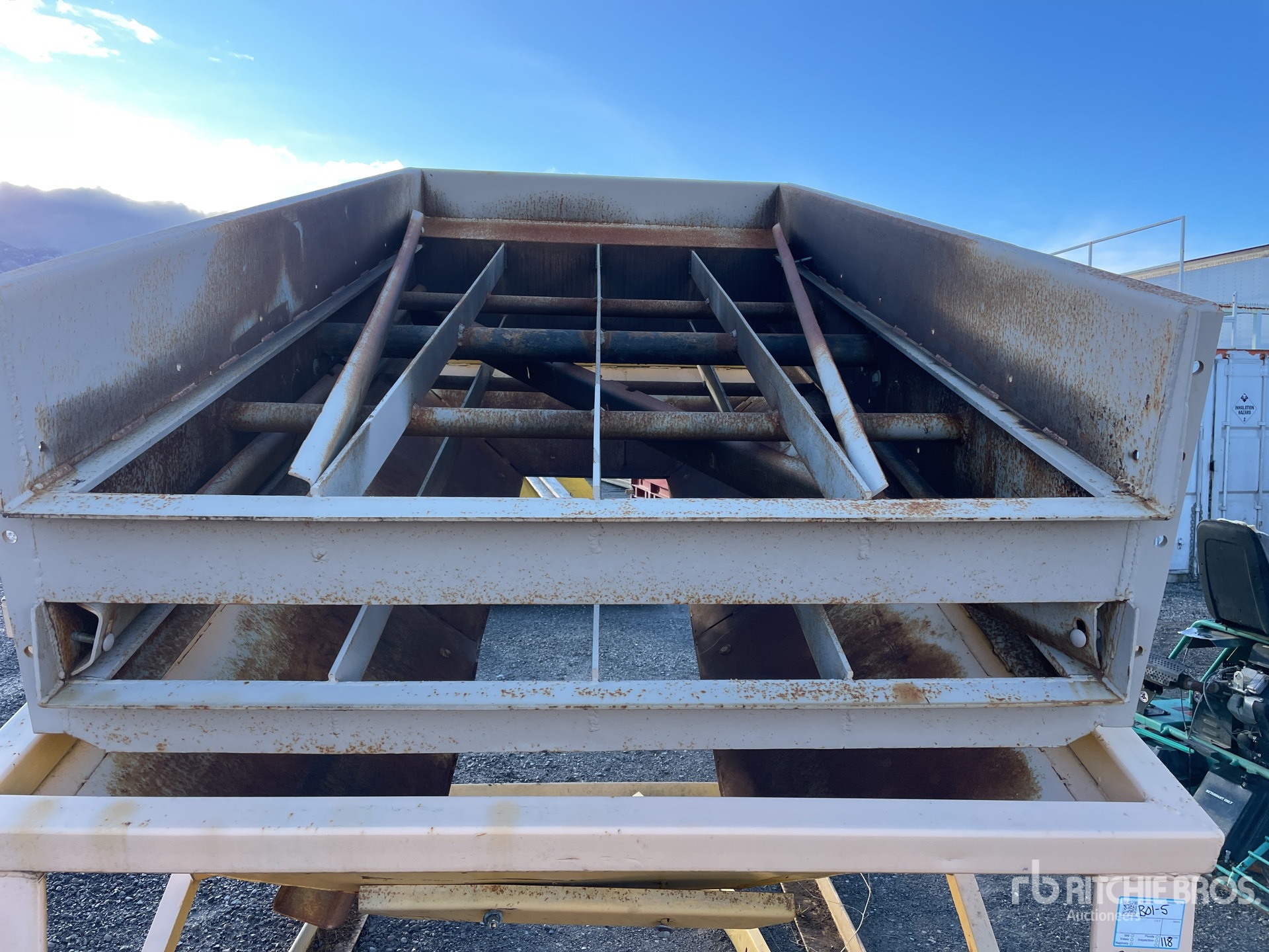 Maten worden slechts bij benadering gegeven. De werkelijke afmetingen onder belasting kunnen variëren afhankelijk van de hoogte van de vrachtwagen/aanhanger en de configuratie/positie van de geladen machine. Het is de verantwoordelijkheid van de koper om alle ladingen te meten voordat deze onze veilinglocatie verlaten, om te garanderen dat de lading veilig is voor transport. Alle maten moeten door de koper worden gecontroleerd. Vertrouw niet op deze maten voor transportdoeleinden.