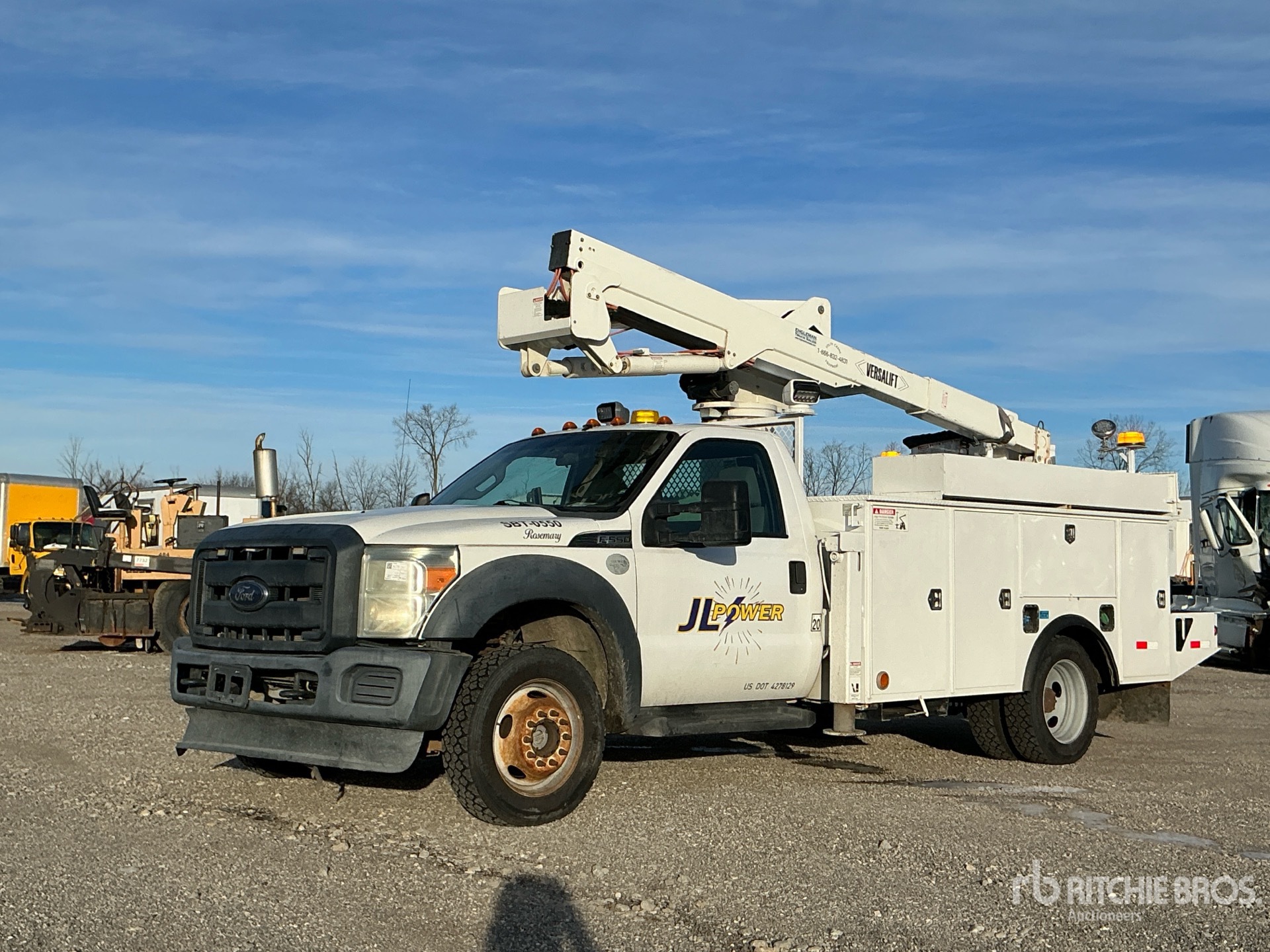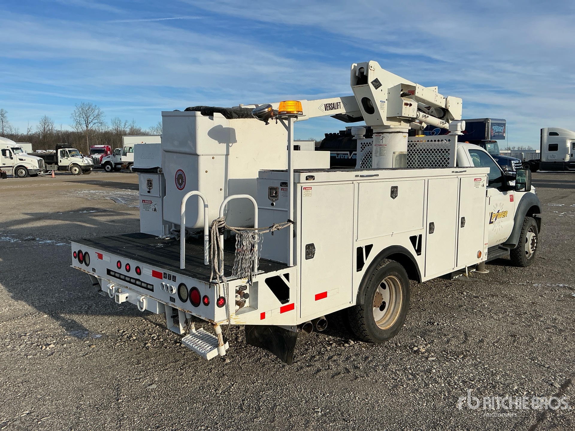 Ford Power stroke V8 6.7 L Diesel Engine, 6-Speed Automatic Transmission, 6500 lb Front Axle, 13660 lb Rears, 18000 lb GVWR, 225/70R19.5, Spring Suspension, 165 in Wheelbase, PTO, Front Mounted, One-Person Articulating-Telescopic Boom, Utility Body, Out and Down Outriggers, 13 ft 6 in x 96 in Bed, 2” square receiver