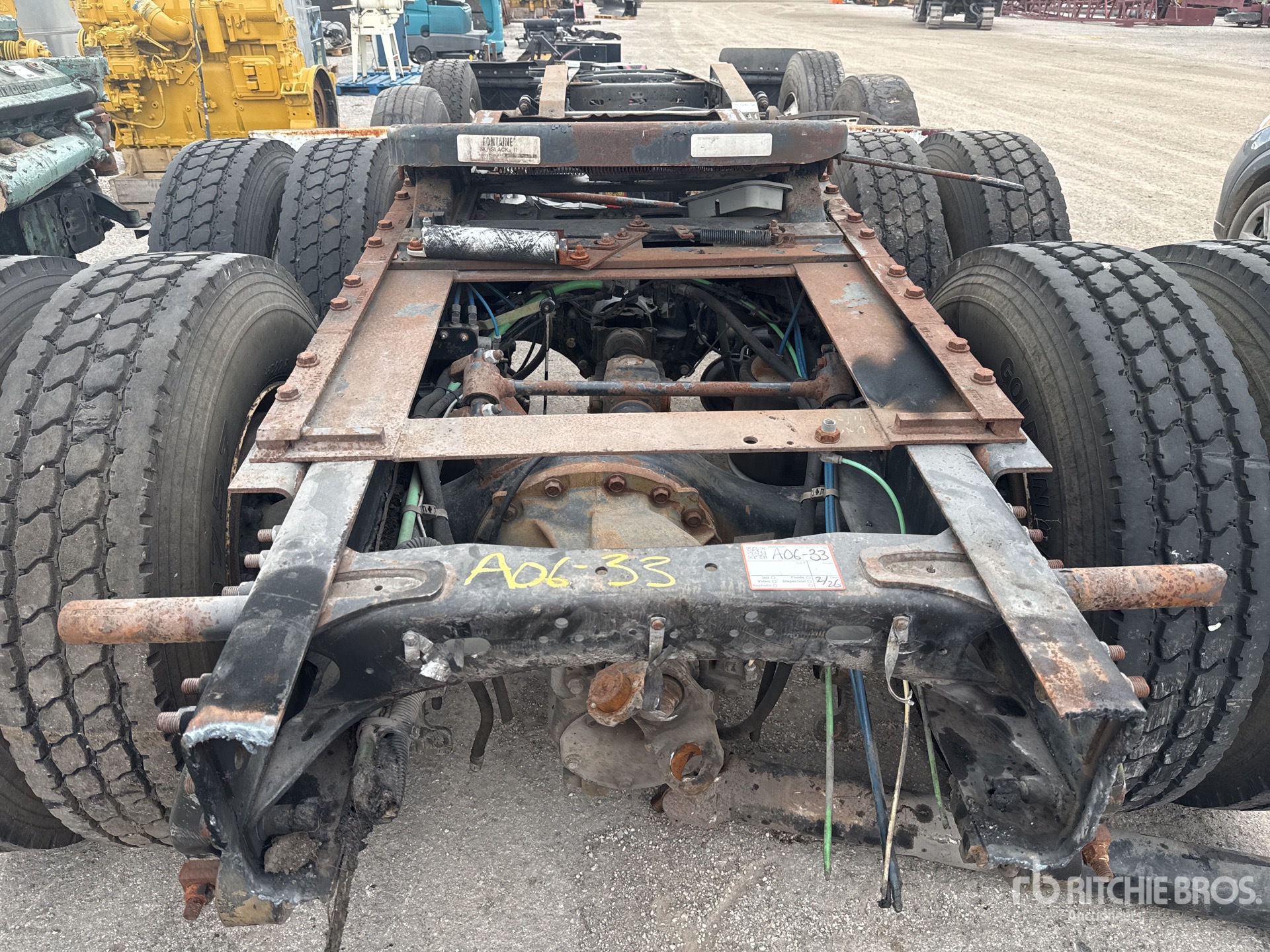 Materieel wordt niet getest onder belasting of gebruikt in alle beschikbare versnellingen. Wij geven geen verklaring of garantie dat het materieel volgens de specificaties van de fabrikant werkt. Er is geen inspectie uitgevoerd aan enig ander functionaliteitsaspect dan uitdrukkelijk in dit document vermeld. Er zijn alleen selecte foto's beschikbaar voor afzonderlijke onderdelen van het onderstel, en deze zijn mogelijk niet representatief voor de staat van het gehele onderstel.
